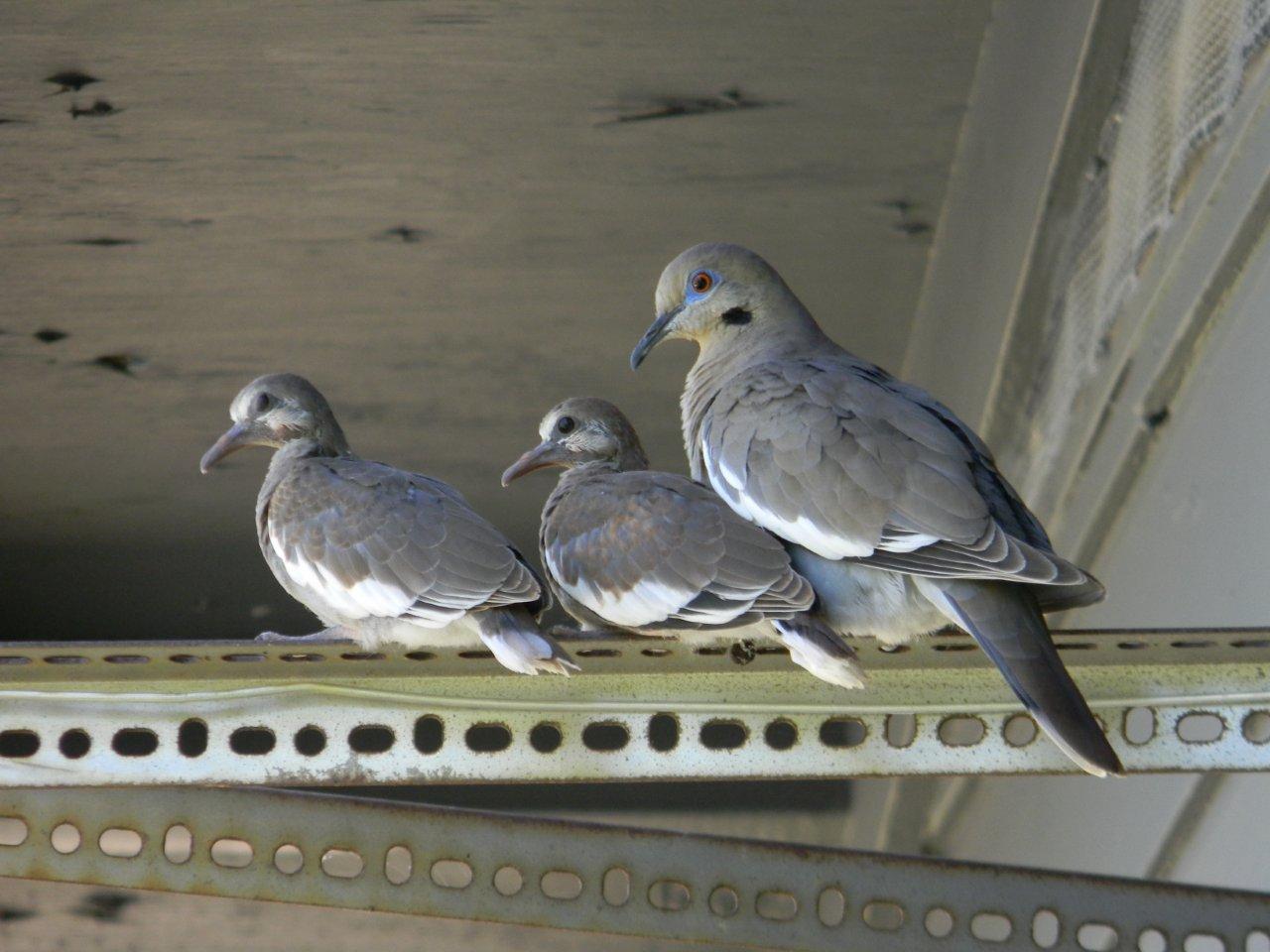 [quote="alisikovaбыстро как выросли. Спасибо Мартина, очень интересно  [/quote] Да, быстро. Меньше месяца прошло от снесенного первого яйца до покидания гнезда птенцами. А сколько переживаний! Как-то за 3-5 дней до их вылупления (или вылуплевания?) меня разбудил сильный шум бензопилы, Оказывается, наши соседи наняли рабочих для спиления огромного дерева, засохшего во время прошлогодней техасской засухи. Дерево находилось метрах в 5-6 от гнезда. И тут все взаимосвязано... До этого я перестала парковать машину под крышей веранды, чтобы лишний раз не беспокоить птиц. Машина оставалась на драйвее. Небольшие сухие ветки дерева падали на нее и соседи решили, что легче заплатить за снос дерева, чем покрывать за причиненный ущерб автомобиля в случае чего. Вообщем, птицы оставили яйца и вернулись только более чем через 3 часа, когда дерево было спилено, шум стих и рабочие уехали. Все это время я переживала, вернутся ли птицы ? Муж часа через два говорил, все, поздно, не вернутся, затем говорил, что бесполезно, яйца за 3 с лишним часа остыли. К счастью, он ошибался, но понервничать нам пришлось...