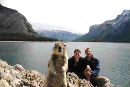 А я вот на такую забавную фото наткнулась в интернете, к сожалению ссылку не сохранила, Это люди фоткались на фоне пейзажа и тут любопытная белка заглянула в камеру)))