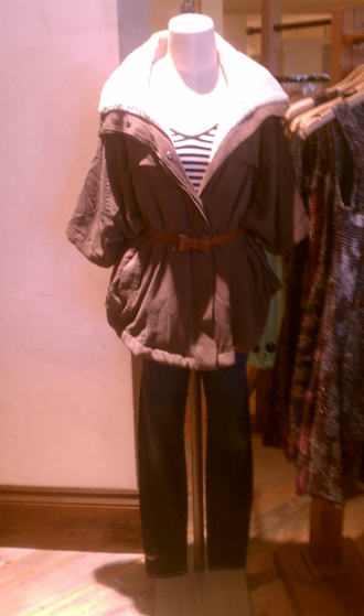 Магда ,у меня куртка в Лос-Анджелесе, в поездке, была не спортивная...довольно универсальная куртка из тонкой красивой плащовки (WHBM) и нарядным воротничком плюс кашемировый свитерок...рада была, что и эту куртку прихватила,потому что рассчитывала там в поездке,бралось минимум вещей, на более теплую погоду, а не холодный дождь сутками...Платье в полоску не впечатлило...
