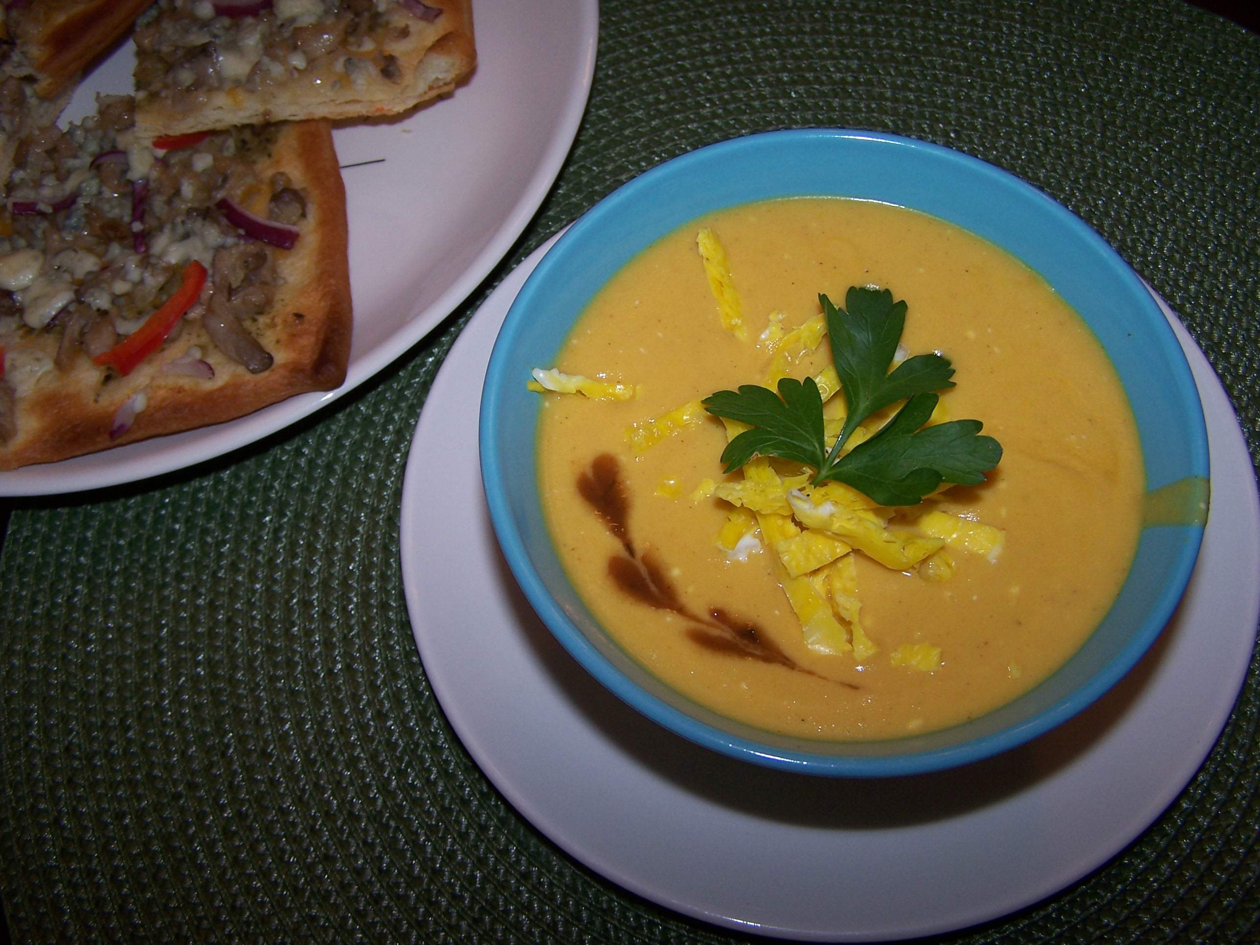 Картофельно-кабачковый суп-пюре, flat bread с грибами