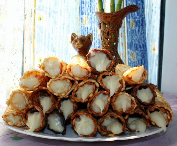 tetiana t писал(а): а внутри что? или это пустые трубочки? Что положите... Но у меня дома были пустые, надо у мамы рецепт попросить  вкус детства