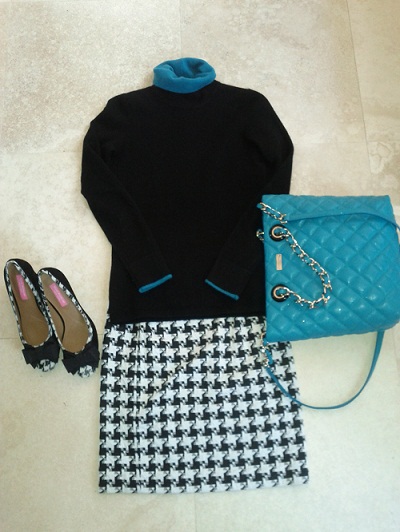 Собралась на работу: кашемир.водолазка , юбка в гусиные лапки...черные колготы и кожаная куртка (не фотографирyмемые)...поменяю туфли на работе на флэтс, которые на работе храню (увы, не в офисе работаю)...