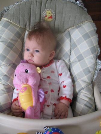 Varvar-ka , Какая у вас куколка доченька  . у нас с вами столько совпадений, моей доченьки тоже почти 6 месяцев, зовут Алисе и стульчик у нас такой же