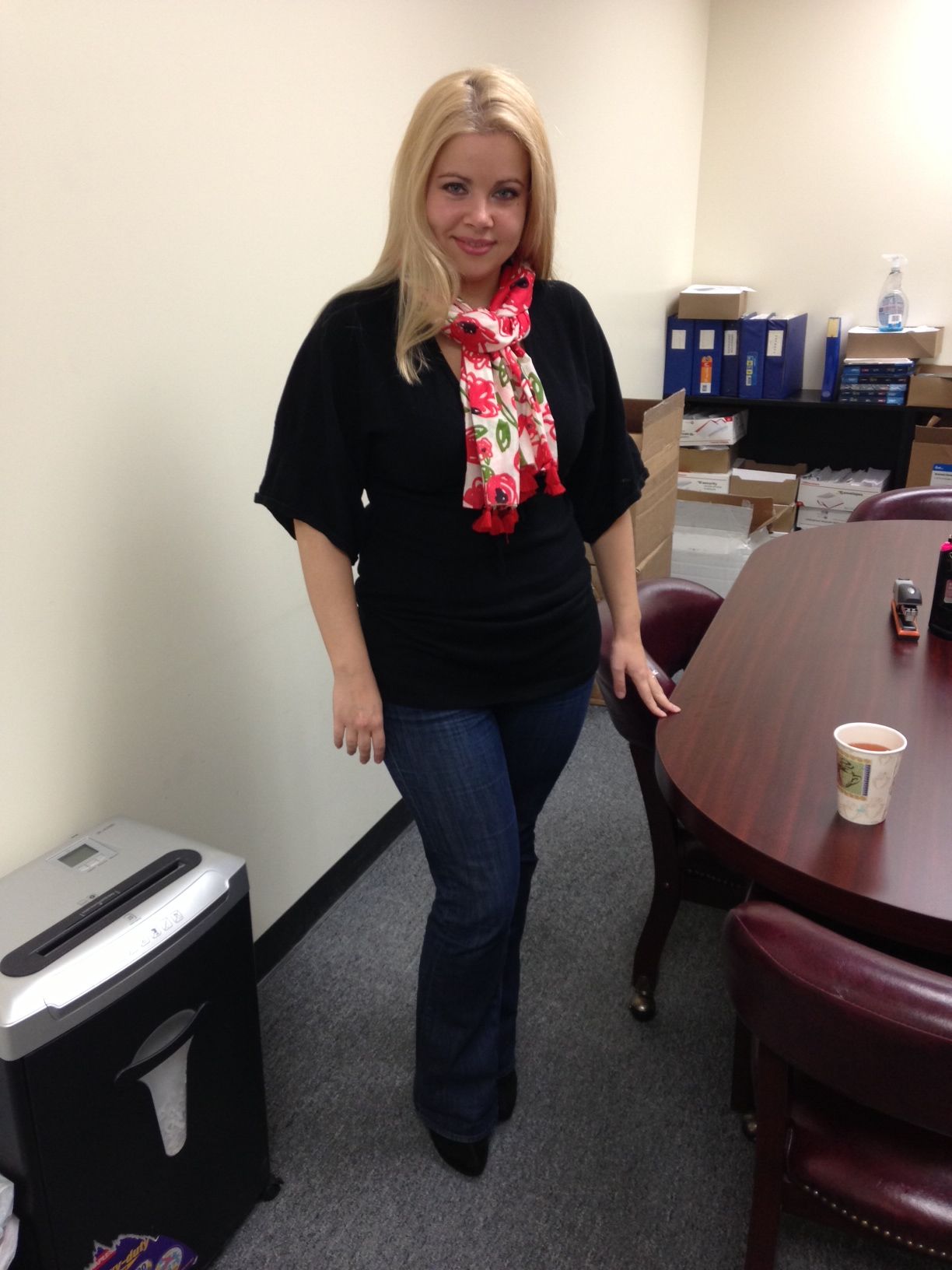 Все просто отлично, платье очень кекси, никакое не домашнее, очень выгодно подчеркивает фигуру, талию и грудь, не надо за шарфиком их прятать. Украшение на другом платье тоже очень понравилось. Все к месту и все красиво.