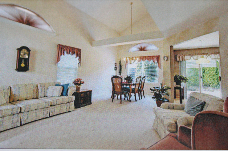 Девы, помогите с идеями покраски ливингрум. Дано: большая комната, совмещающая в себе ливинг и дайнинг. Потолки высоченные, в одном месте проходит поперечная балка. Сейчас в комнате три стены белые, чертвертая покрашена в совершенно идиотский цвет - бежево-рыжий с просвечивающим местами синим. Карпет будем убирать и класть хардвуд вот такого цвета Вложение: