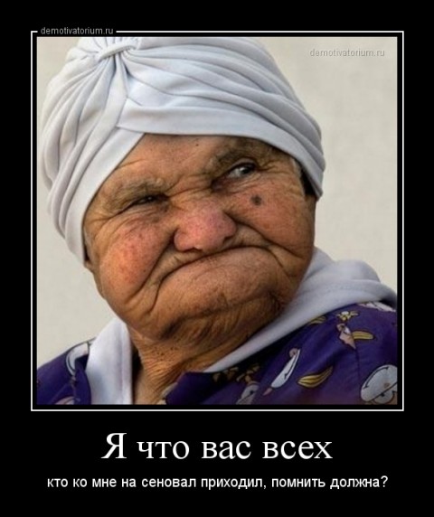 Тоже прислали, не знаю, откуда стянули: "Сижу в очереди к зубному. Рядом разговорчивый дедок пытается растормошить публику на тему поднятия настроения перед предстоящим действом. Заводит разговор с каждым. Некоторые молчат, видать, совсем невмоготу. Кое-кто отвечает. Разговор с одной из бабулек приводит к выяснению того, что живут они в соседних пригородных деревнях. Судя по внешнему виду и соответствующему возрасту, дед признается, что в молодости частенько хаживал в соседнюю деревушку на предмет познания радостей любви. Подкалывает бабку, - "Как тебя зовут-то, может быть мы и с тобой любовались на сеновале в те годы?" Ответ бабки убил всех, ржали так, что врачи выглядывали из кабинетов, - "Я что, вас всех, кто ко мне на сеновал приходил, помнить должна?"После этого дед философски молчал..."