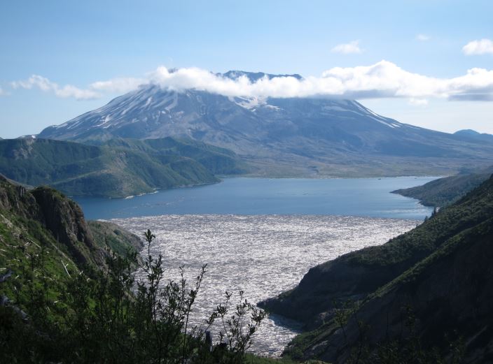 А это Spirit Lake. Оно вышло из берегов во время извержения и смыло обгоревшие деревья в воду. Вот так эти остовы и дрейфуют с одного берега на другой, в соответствии с направлением ветра. Сама St.Helen красуется за ним. По мне - так очень красиво....