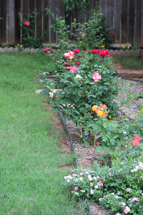 Моя розовая клюмба (Березка, ты спрашивала?), там цветет, хоть и не все кусты видно - неправильно по росту подобраны, а на большой один укроп колосится, но скоро рудбеккии и монарды должны начать - тогда хоть будет на что глянуть.