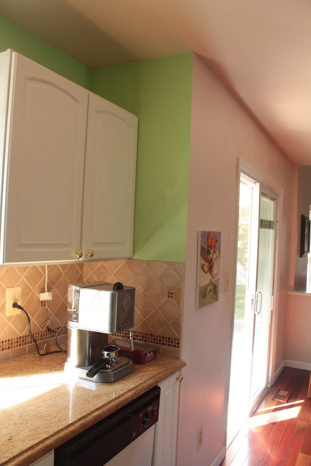 Вот такой цвет хотела на кухню http://www.benjaminmoore.com/en-us/pain ... meringlime В общем купила сэмпл, и даже картинка меня не смутила, что вроде-бы как ярковат. Начала красить, показалось сильно ярко на куске стены, ну подумала что надо бы все закрасить, что-бы полную картину увидеть, выкрасила, этой банки сэмпла мне на всю кухню хватило в один слой. Вот что получилось, цвет намного ярче и намного теплее, чем если смотреть онлайн, желтый прям просвечивает.