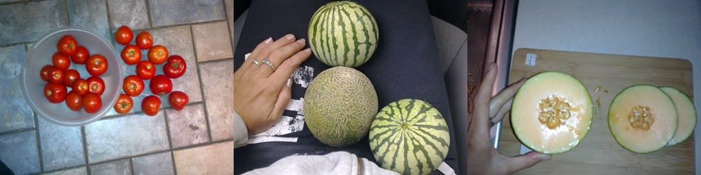 посадила впервые тыквы и арбузы и прочие бахчевые. так вот некий musk melon оказался ароматной дыней. арбузы желтые внутри. дыня меня порадовала ибо не встречала ароматную дыню в магазинах. 4 куста помидоров плодоносят кажд 2-3 дня..уже начала сальсу складировать в гараже)