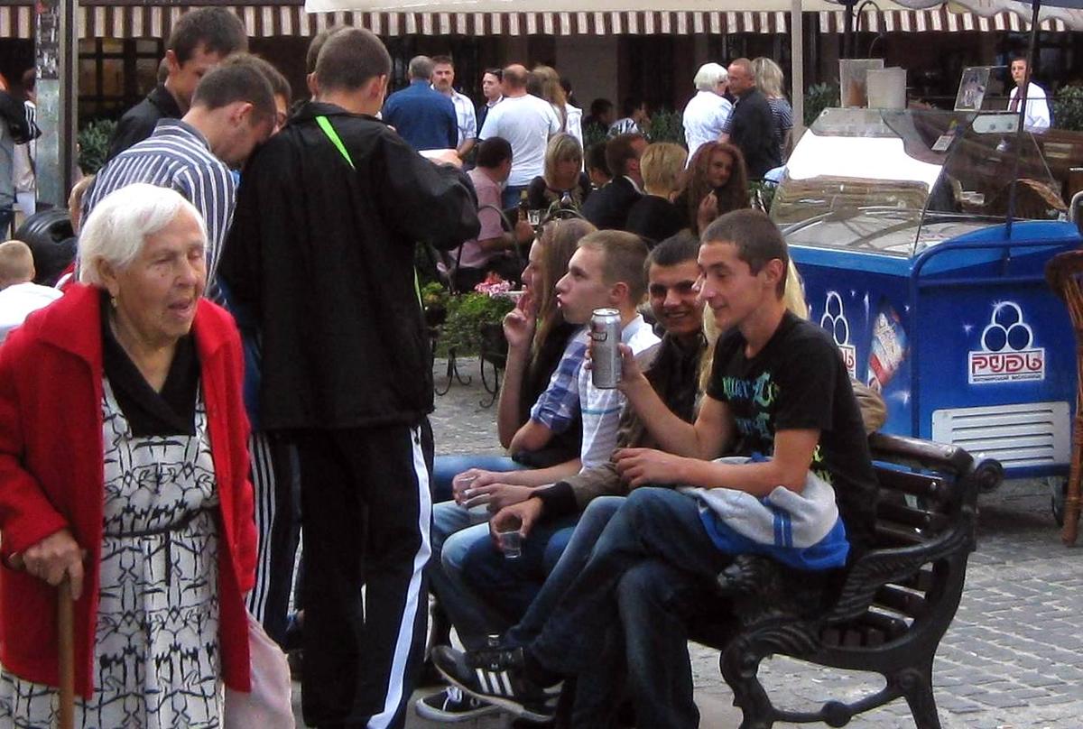 Ну, здравствуйте - УЖЕ не разрешено я с дуру весной присела (с мамой) на скамеечке попить пивка, солнышко, тепло ... хорошо хоть не увидели/оштрафовали (потОм сестра объяснила, что нИЗЗЯ нынче) ..празднование Дня Независимости 2013(что очень, по-моему символично) в "колыбели революции" г. Львове там не только пиво, но и кое-что прозрачное в крохотных стаканчиках бабуля и рада бы присесть, но попробуй им слово скажи - костей не соберешь! новые европейцы.. гордость нации во всей красе