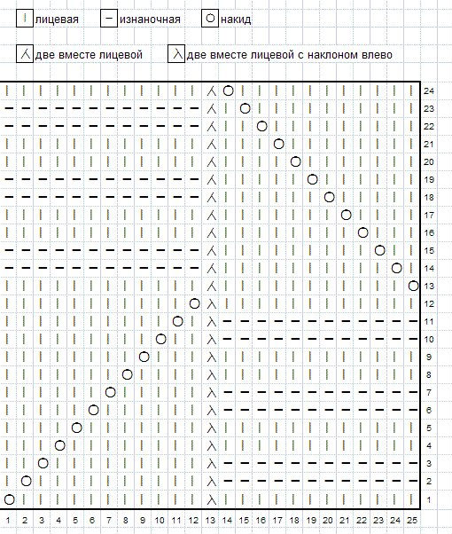 сорри схема. Обратите внимание: рисунок вывязывается и спереди и сзади,т.е. накиды и по две провязать в каждом ряду.
