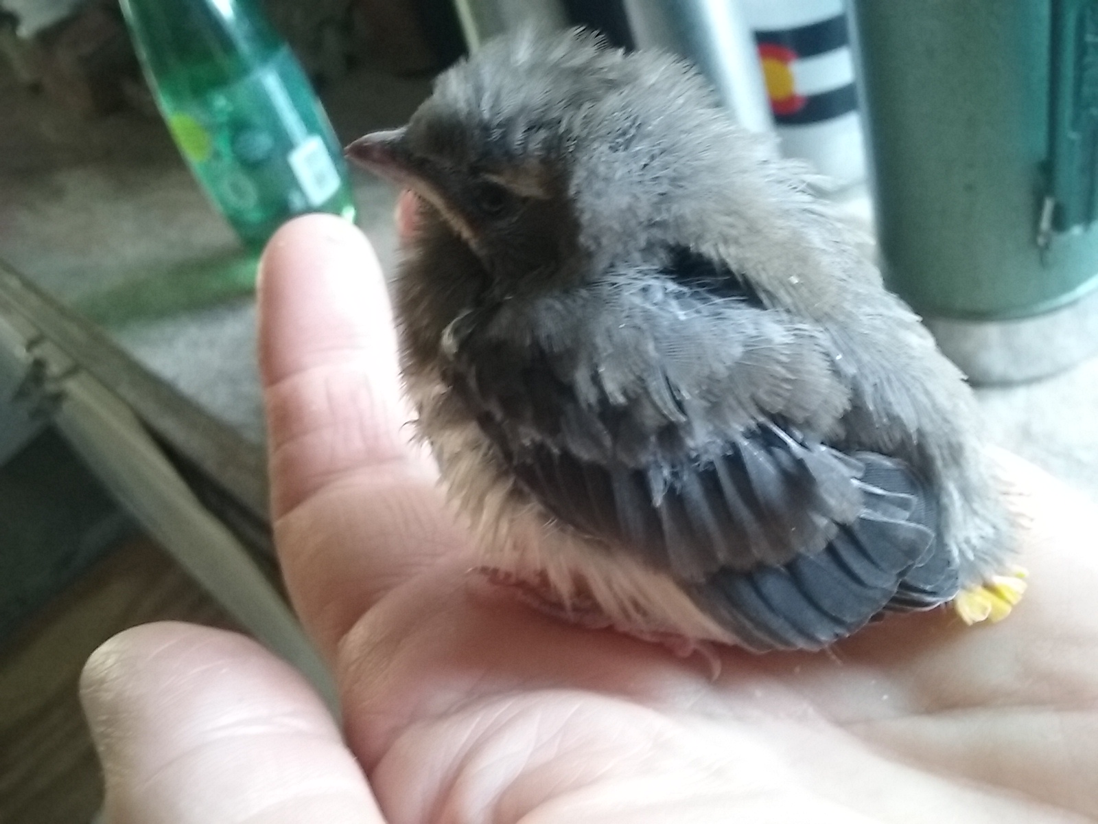 Кто знает? Сидел на драйвее. Огромный клен рядом. Гнездо не найти. Клюв открывает. Я сварила яйцо перепелки, кушает кусочки, но вроде стул стал жидкий. Сегодня утром нашла. И так оставить жалко, и посадить на дерево не знаю, можно ли. Что делать? Может, кто знает что за птица. На хвосте начинают расти желтые перья, а так, как воробей и размером тоже.