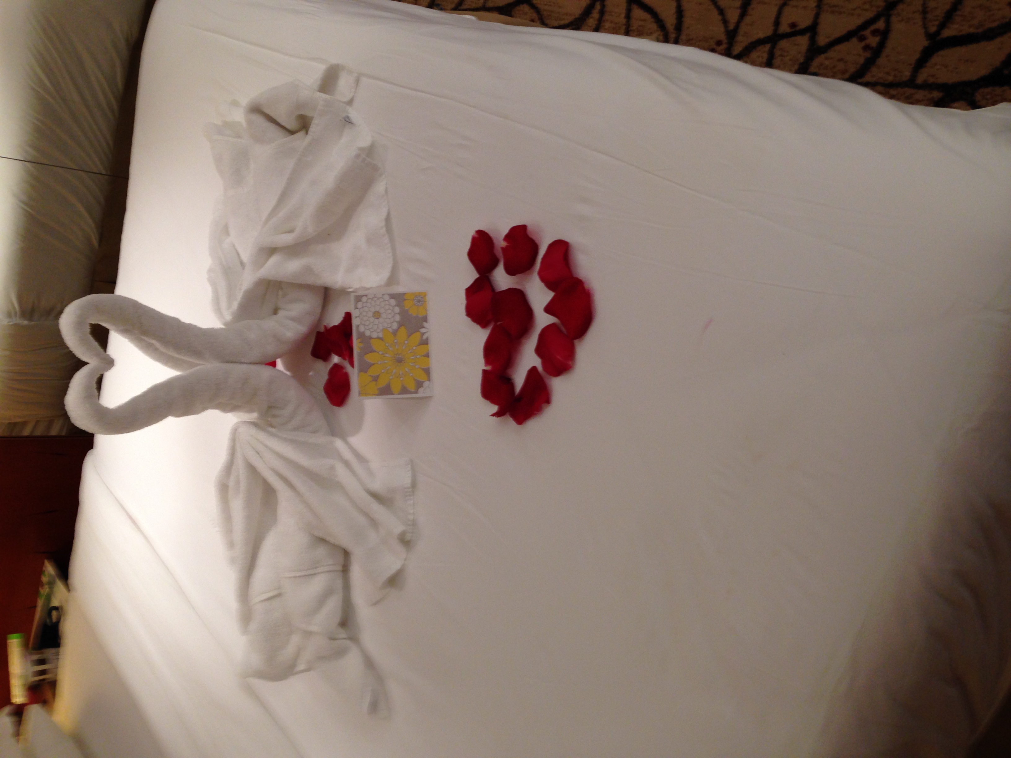 Забыла упомянуть, мы там отпраздновали наше 17-летие брака. Нам накрыли в каюте красивый стол с шампанским, а на кровати сделали двух лебедей с лепестками роз!