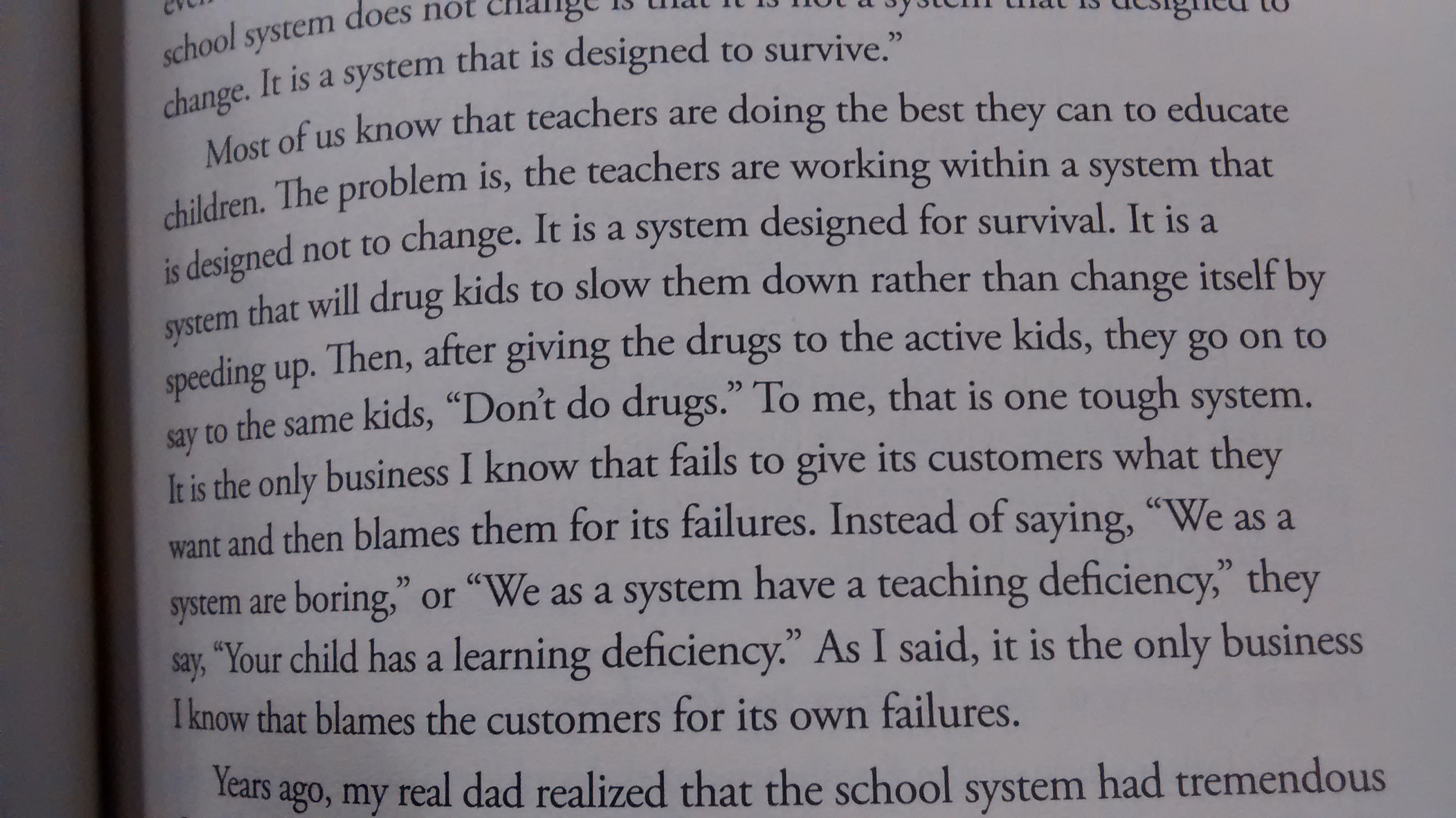 Boonski писал(а): Альтея, ты о чем? Если нет альтернативы, то ее нет. Тогда, наверно, хоумскуллинг как вариант. Я ж с этим не спорю. Если бы переехали, то сын пошел бы в паблик потому, что там паблик приличные, и он бы там был только на киндер. это если на работу не надо. А если надо, то вариантов особо и нет. Я просто не поняла, к чему был запощен кусок из книги