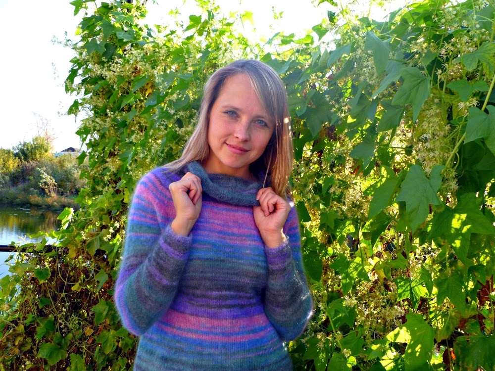 Я из мохера вижу только японские ажуры. Тем более из этой меланжевой коричнево-зеленой пряжи.