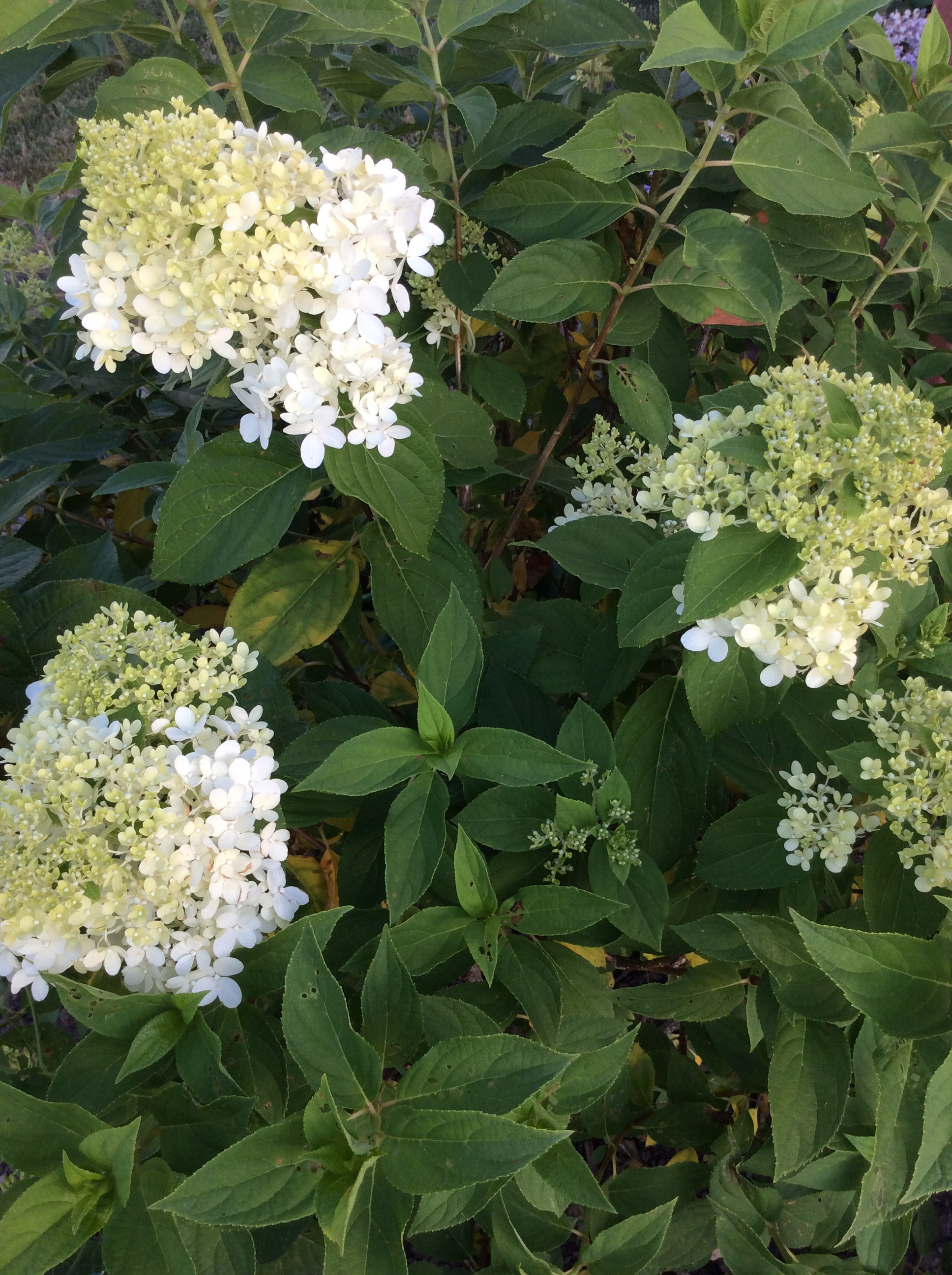 А это у меня гортнензия Annabelle так распушилась и молоденький куст hydrangea strawberry sundae. Ох, гортензии -упасть не встать. Я тоже заинтересовалась такими видами. Их поливать особо не надо и некоторые на солнце окей. Купила себе Panicle Hydrangea Limlight. (Где там Nevera со своим советом, как не покупать новые растения  ) У подружки увидела и тоже захотелось. Очень неприхотливая. Цветёт бурно, особенно в период когда жуки летят (они её не трогают) и розы все срезаны Limelight - cheat bloom))) Потому что купила уже с цветами. ZooZoo,да здесь я ,здесь-только совет не мой, а мне-убедительно рассказали. Все старо,как мир-СЧИТАТЬ конечно. Вот ты знаешь,сколько потратила в прошлом году на свои "хотелки" или как говорит моя знакомая-закопала в землю? Мало это или много - тебе решать,главное ведь какой эффект от посаженного. Но вот большинство здесь форумчанок единогласны - получается очень много.Конечно можно и за доллар купить горшок растюхи-только потом во что обойдется ее уход?. Короче - на листе бумаги прежде всего записать необходимые траты- у меня это вода,мульч,подкормки,инсект. А эти траты ежегодно увеличиваются, с приобритением новых растений.Я примерно знаю сколько каждый год мы на это тратим, ну а дальше записывать все траты после каждой покупки и тут же накопительно суммировать. Записывать все, даже мелочи-в итоге накапливается приличная сумма. Я в прошлом году определила примерно дополнительную сумму после необходимых затрат и старалась(с трудом  ) ее придерживаться.Вот кстати увлеклась черенкованием,тех растений,которые хорошо уживаются в моем климате и как бы украшают сад.К новым крупным растениям стала относится осторожно,если не видела здесь ни у кого в округе-сдерживаюсь не покупать, чего изобретать велосипед-как говорит Кисмет.Ну как то так. Да уж.. nevera, всё правильно говоришь. Страшно даже думать сколько денег тратится на растюхи, да на землю (я покупаю) и на молч и химию и полив.. Блин, мы только молча в этом году купили 60 мешков... У меня шкафчик весит в ландри рум, со всеми этикетками (и ценами) от растений которые я покупала. Шкафчик имеет четыре полки. И он еле закрывается от количества напиханого в нём.. Причём, около 30 % от этих этикеток я выбросила. Так вот, если взять калькулятор и посчитать только эти этикетки, то правда получится, как Розамунда сказала - получится подержаная машина.... Дурно становится, как подумаешь. А я стараюсь не думать!  Вот тебе и выход!)))))) Ну а что? Я, например не большой фанат тряпок\сумок\косметики. Покупка растюх, например, мне больше радости доставляет. А жить тодыть для чего, если не радоваться?))). Ну вот, короче примерно так я себя уговариваю