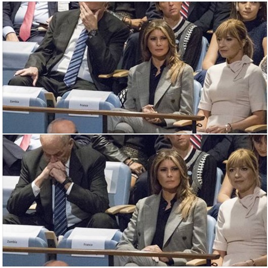 Carmen22 писал(а): If you missed trump's UN speech today, I'll just sum it up by showing you pictures of John Kelly taken while trump was speaking. Yeah. It went that well. Там еще позы мужчины красноречивы А у Мелани как всегда одно и то же выражения лица. Угрюмо сдержанное.