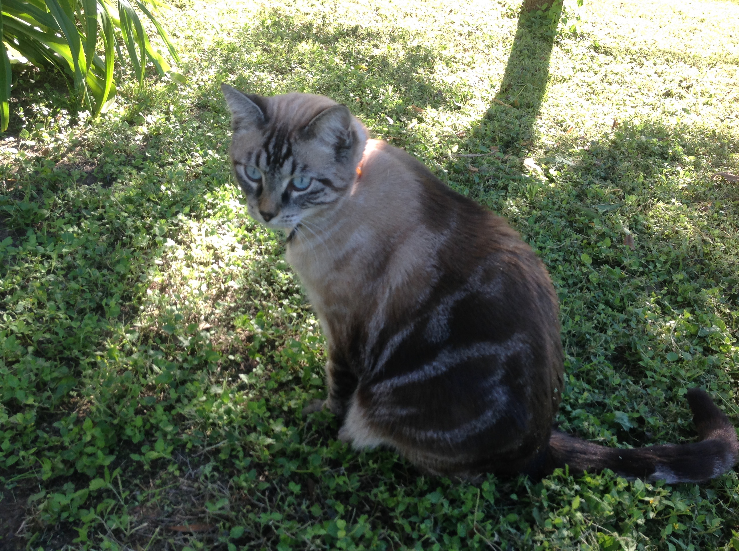 Martina писал(а): К нам на бакъярд часто кошечка (а может котик) приходит. Такая вся ухоженная, непуганая, ласковая. Имеет бирку на ошейнике с адресом и номером телефона. Ее дом находится через дом от нашего на противоположной, примыкающей к заднему забору, стороне. Интересно, что за порода? Шотландец? Шотландцем там не пахнет :) Мне верхняя часть, особенно морда и её рисунок похож на Lynx Point Siamese Tabby, а вторая часть на обычную American shorthair , потому как у сиамских линкс поинтов не бывает вроде в окрасе темного такого тэбби.
