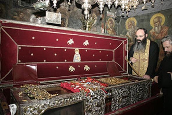 Тело святого Спиридона имеет постоянную температуру: 36,6 градусов. У него растут волосы и ногти. И что самое удивительное - одежду, которая на нем надета, меняют раз в полгода, потому что она снашивается, будто он не лежит в раке, а ходит. Хранитель раки рассказал, что бывали случаи, когда ключ просто не может открыть замок на раке. И тогда священники знают - святого в раке просто нет, он ходит по острову.