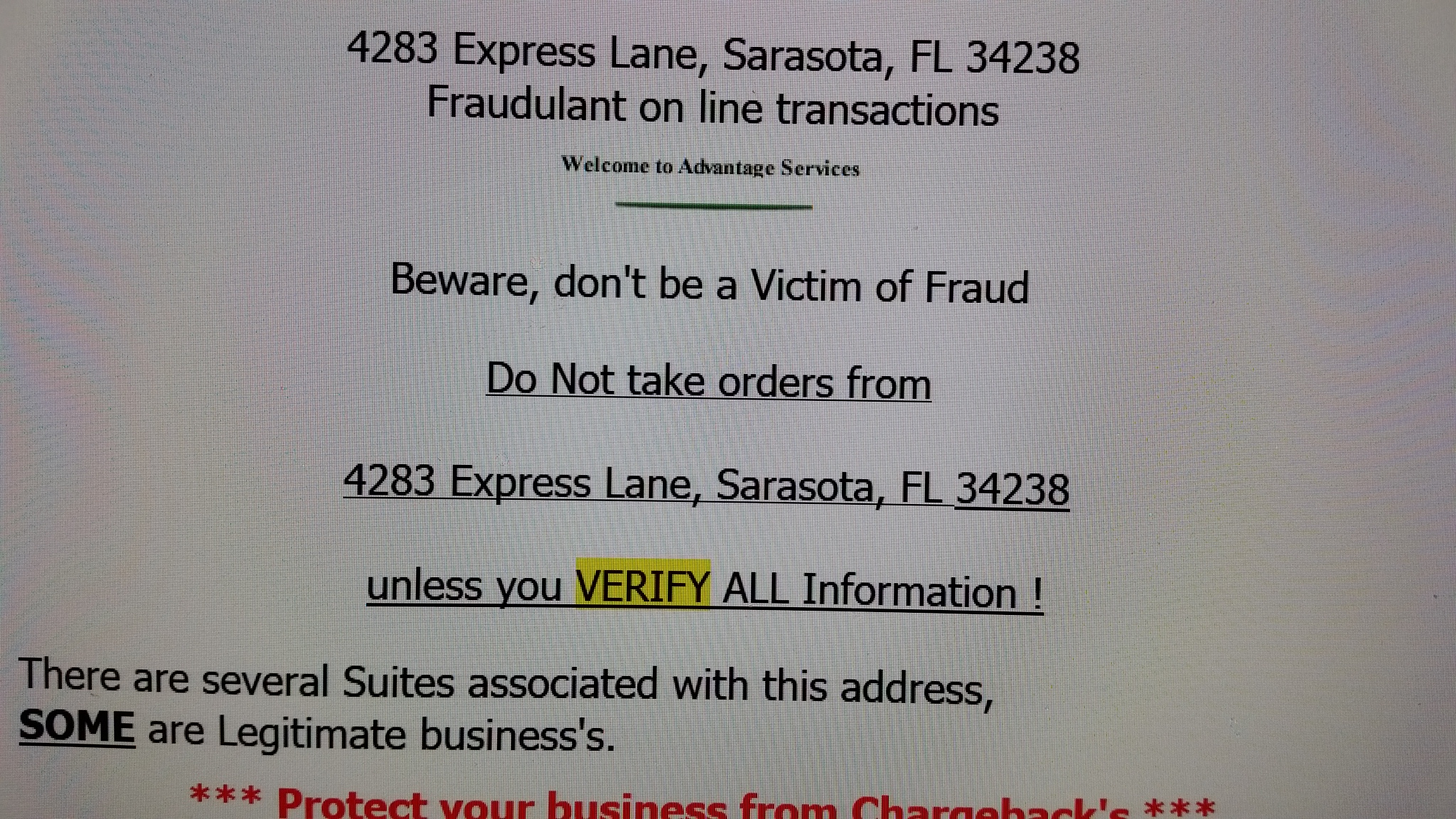 Вот кстати Сарасотовский адрес, только погуглила сарасота fraud сразу выплыла эта интернет-страница.