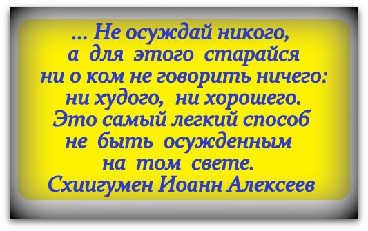 Кто-то из священников сказал, что если не хотим никого осуждать, то, если говорим о ком-то хорошо, надо быть осторожным - мимоходом можно случайно кого-то осудить, например, сравнив одного человека с другим ("у тебя лучше получилось, чем у нее", "ты лучше всех в классе") и т.п.