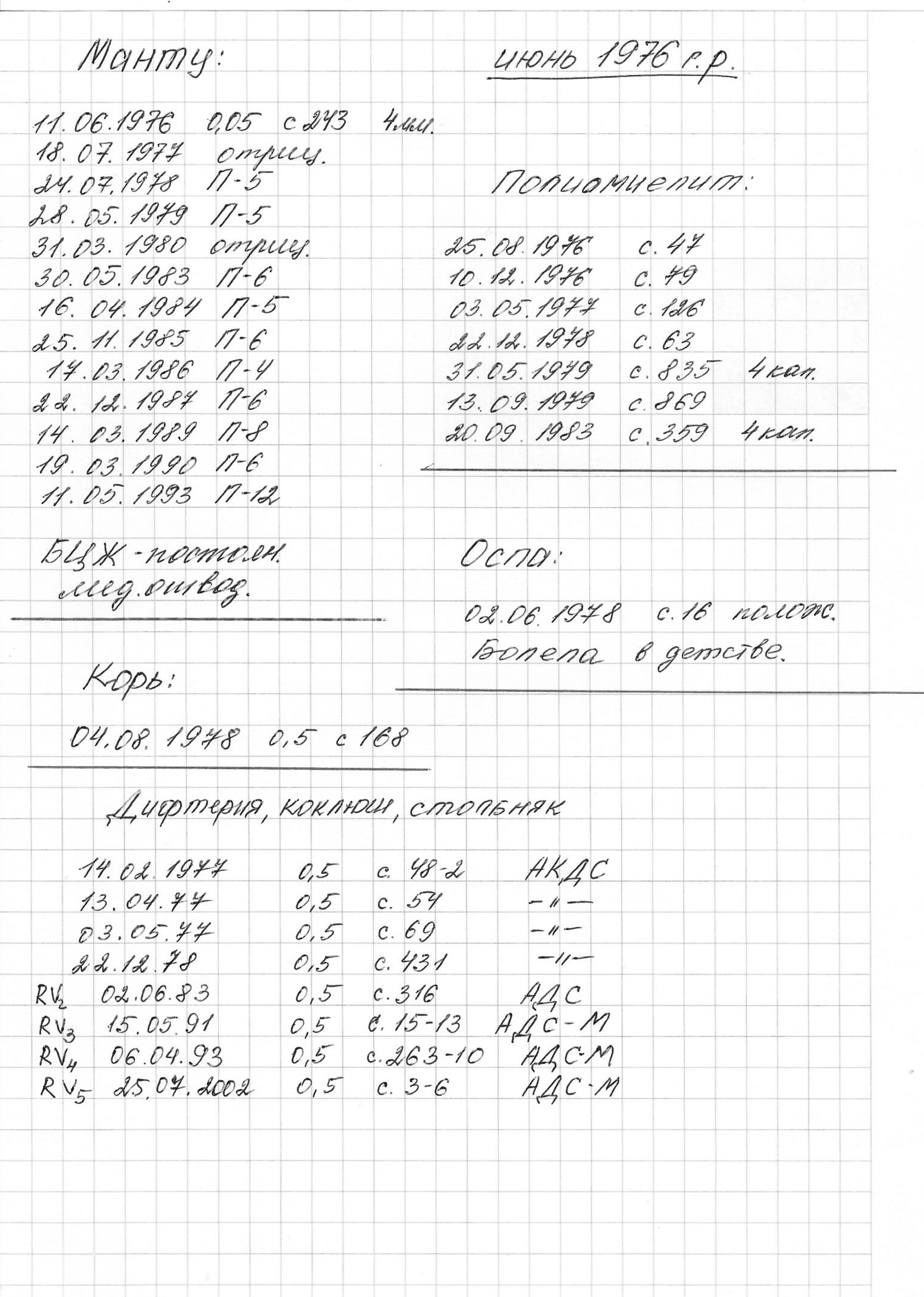 Мне 42 года (1976 г.р.) Медкомиссия будет в конце марта. В детской карточке записаны такие прививки (во вложении). Гриппозную прививку мне делать не нужно ( я так поняла), т.к. "влетать" в США я буду после 31 марта.