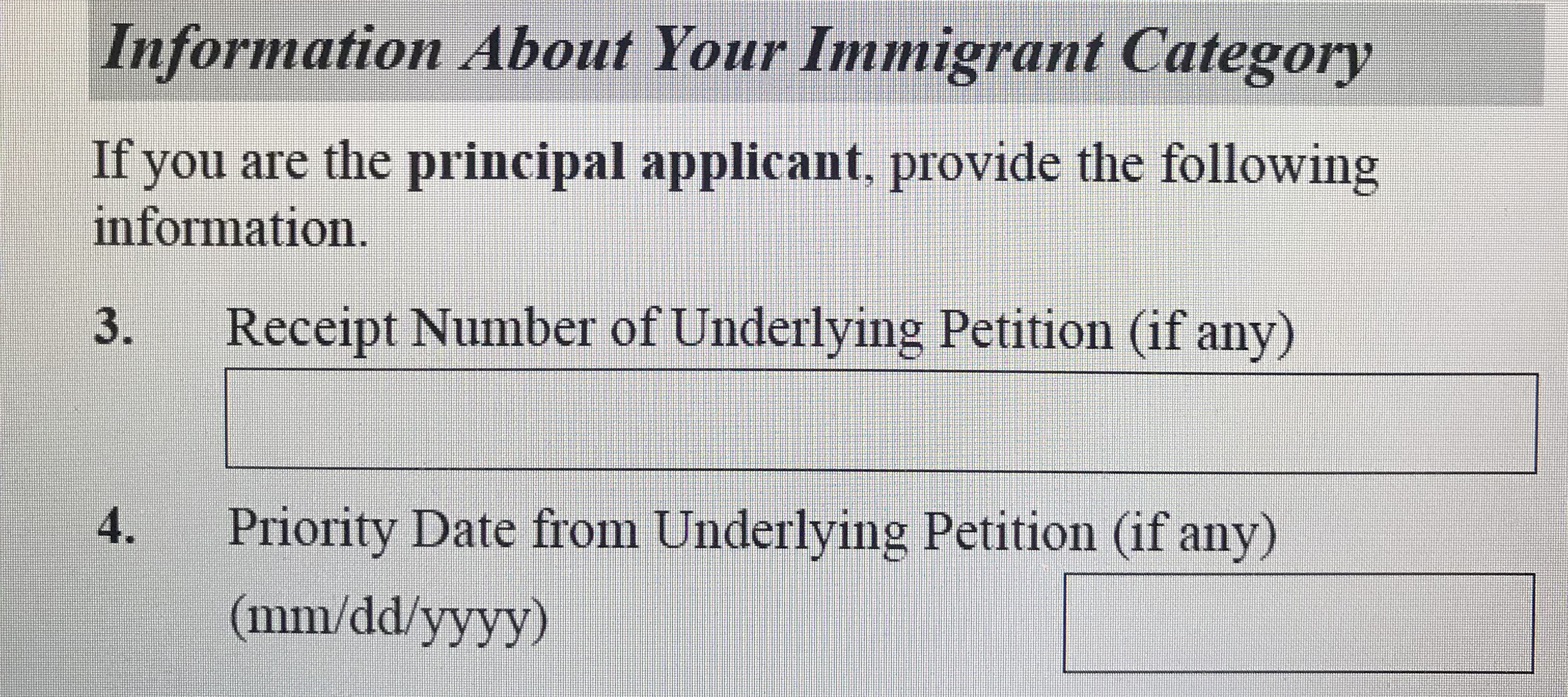 Вопрос по форме I-485, запуталась, на визаджони противоречивая информация Что за Receipt number of underlying petition? И Priority date этой петиции?