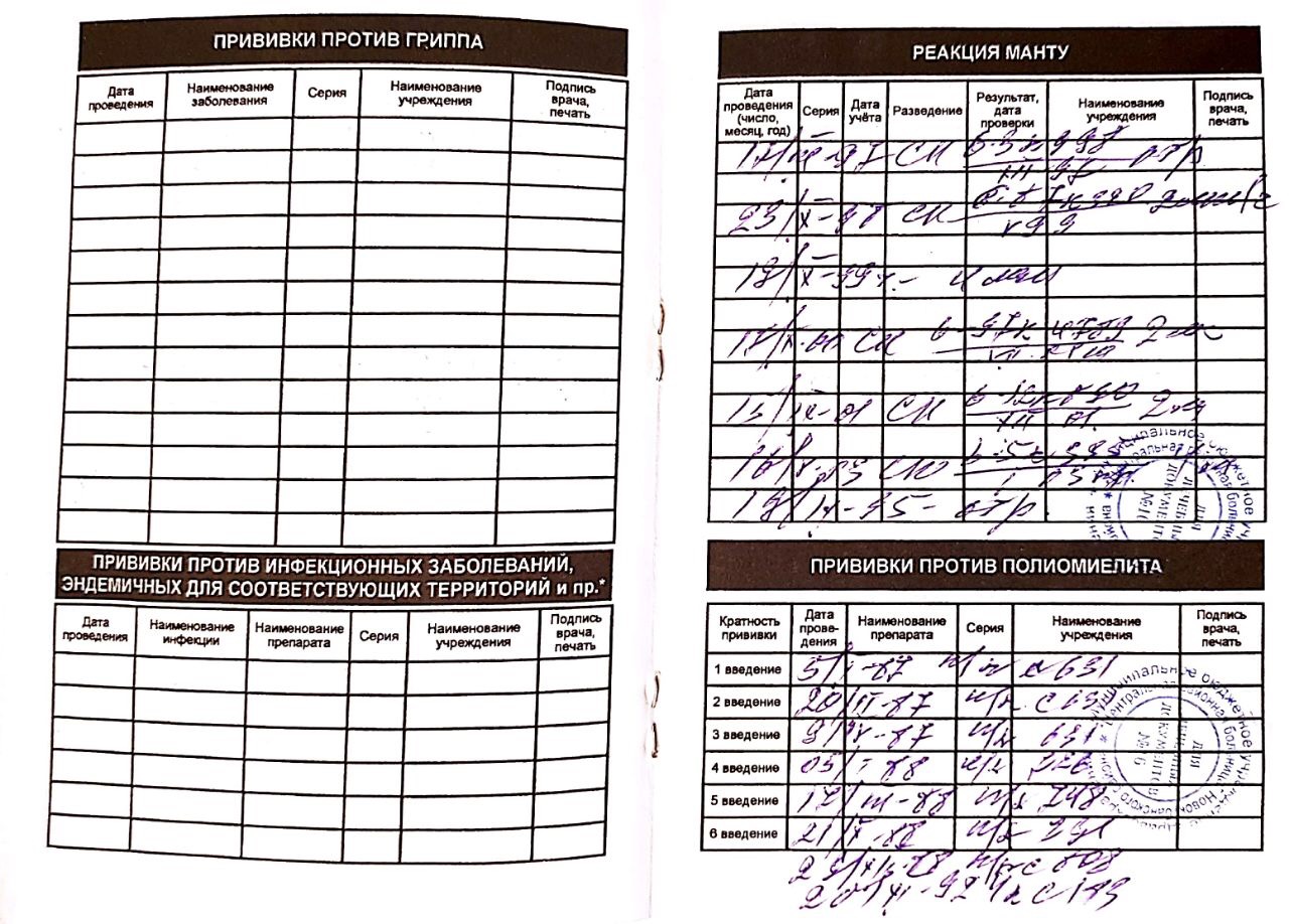 Daria_Daria писал(а): А на что вообще анализ мочи сдается? Просто общий анализ? У меня прививочный лист вот в таком виде, я 93 года, пожалуйста посмотрите все ли прививки у меня имеются? Завтра прививки перенесут в прививочную карту. Спасибо что вы помогаете <3  переносИте в прививочную карту. всё нормально