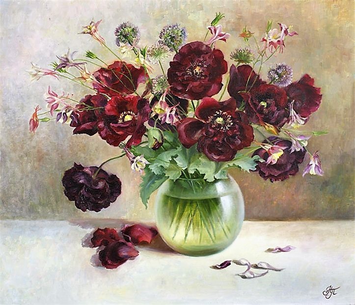 а я опять не со своими картинами.....как здорово, что есть художники, пишущие цветы.... какие разные и какие одинаково светлые букеты....я не против разнообразия жанров и приемов живописи и графики... но моему глазу приятнее вот эта красота))) не обессудьте,девочки! радуюсь за всех здешних творческих людей! жизнь прекрасна -если есть желание украшать ее!