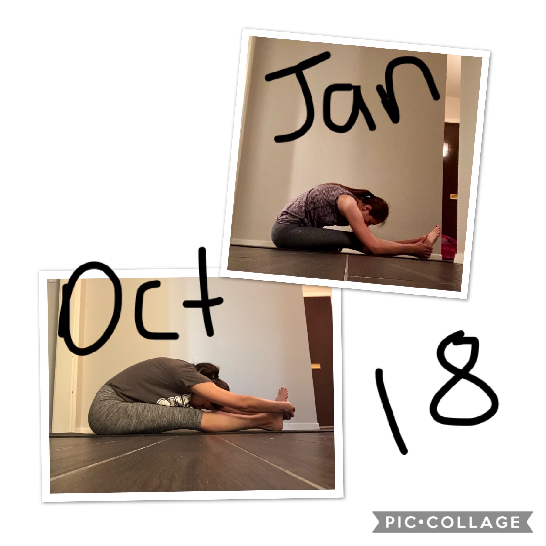Стелла, вы на какую ходите? Flow? Я с нуля тоже начинала. Даже tree pose не могла сделать и нагнувшись руками до колен не могла достать. Это было три года назад. Постепенно по сантиметру продвигалась Буквально. Пол-года и два-три сантиметра. Последний год у меня было очень интенсивно. Прогресс стал виден когда я стала заниматься 4-6 раз в неделю. Вот например на фото - заняло 9 месяцев! Прогресс небольшой, но он есть. Так что у вас все будет. Просто медленно.