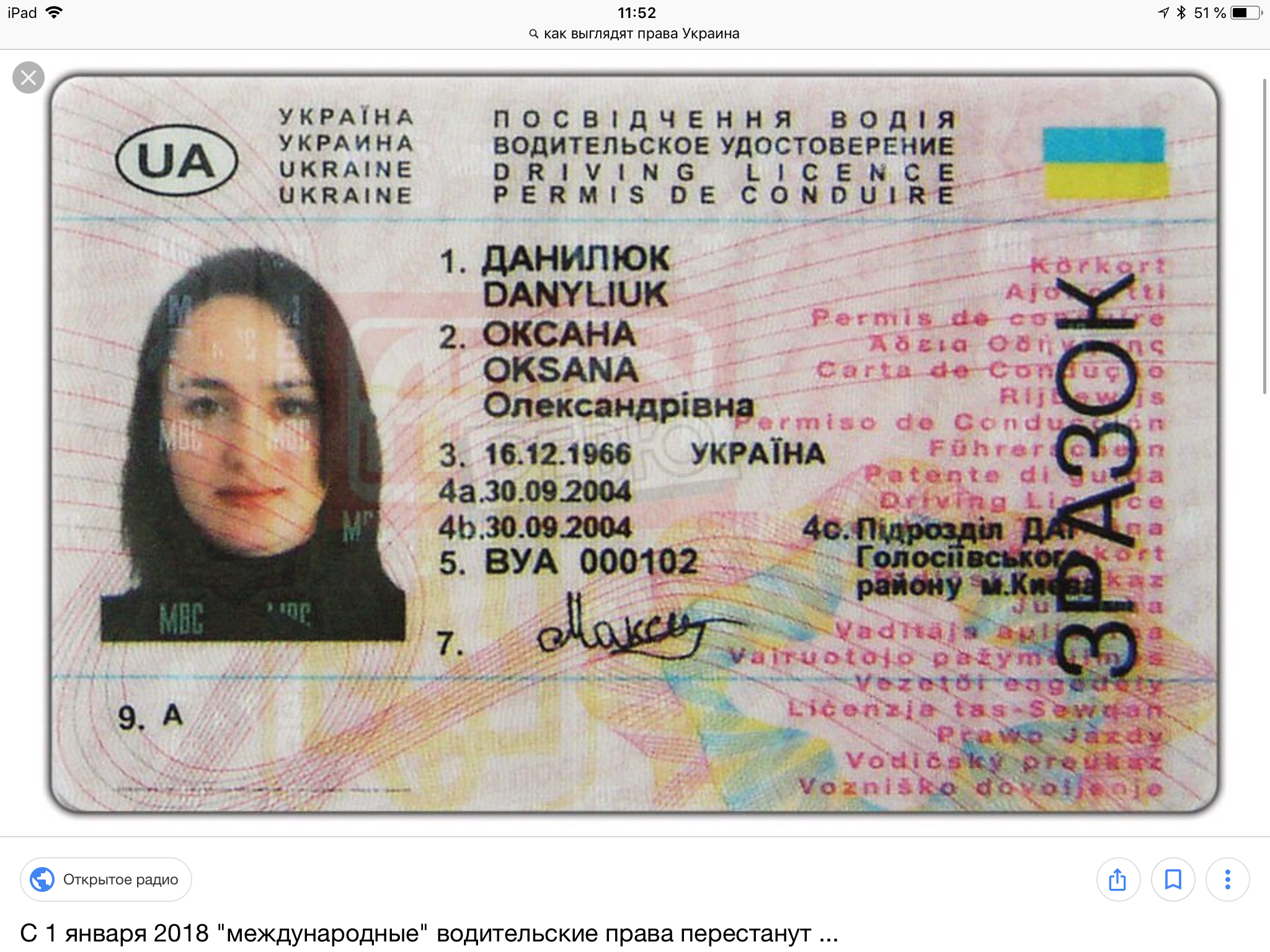 Многие тут также мандражировали по поводу domestic flights, All is fine, we can take a plane. Just in case take your NOA, they won’t ask you anyway. Обычные не во всех странах котируются.[/quote У меня не международные, но европейского образца, там тоже есть английский перевод. Но они сегодня их приняли, и сказали что когда сдам теоретический тест, могу месяц по ним ездить, а через месяц могу сдавать на вождение. А какие у Вас права? Вы из России? Такие розовые формы кредитной карты? Я просто хочу понять, надо ли мне тогда международные права делать или не надо лишние деньги тратить Нет, я из Украины. Мне говорили что надо международные но один знакомый сказал что эти тоже подходят. Вот такие