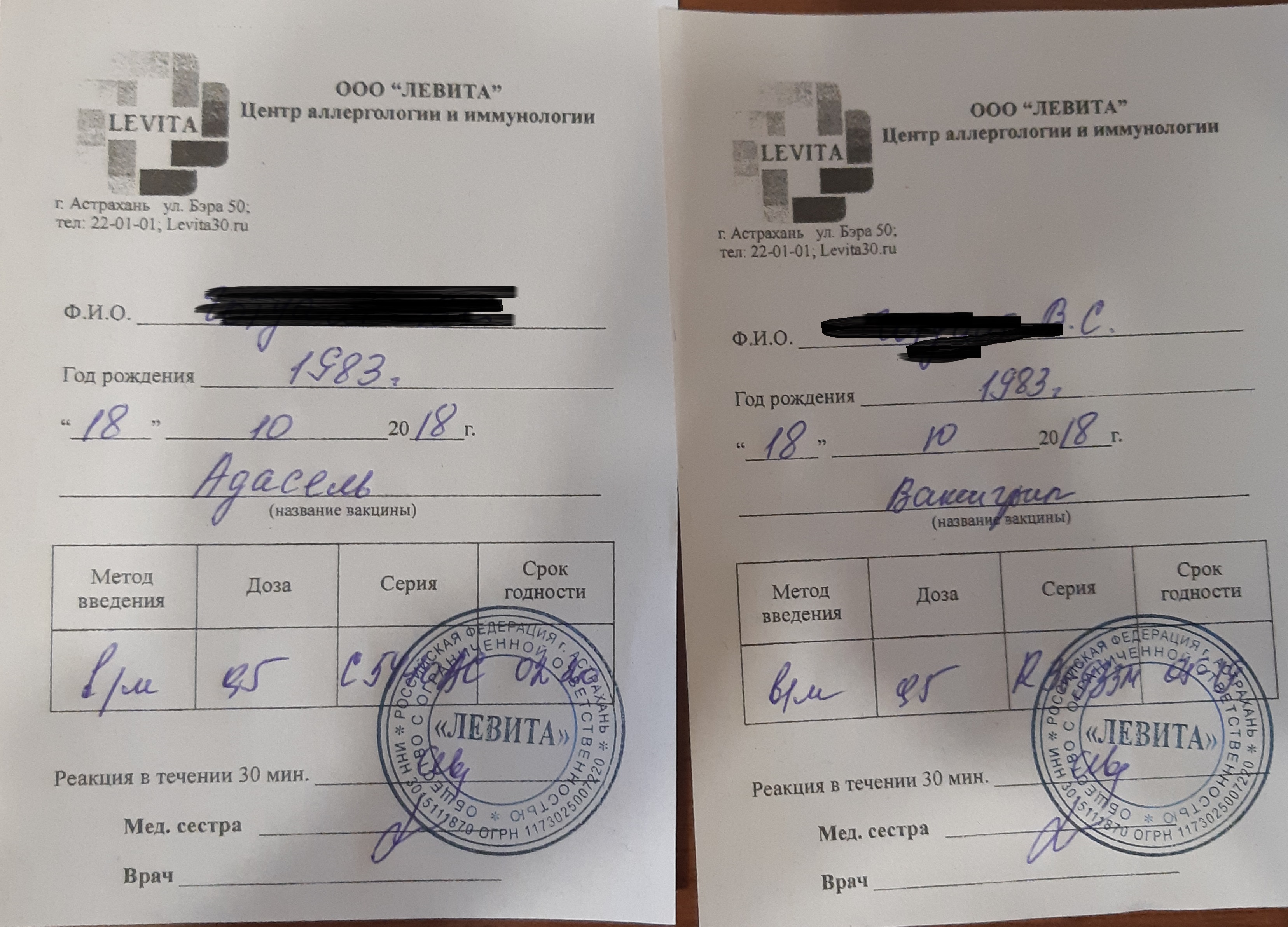 И еще, посмотрите, пожалуйста, как выглядят мои последние 2 справки о вакцинации. Может быть, мне надо подъехать в центр, где вакцинировалась, и попросить врача поставить печать и подпись? Или их лицензию приложить? Или достаточно будет договора, где указан номер лицензии на осуществление медицинской деятельности??