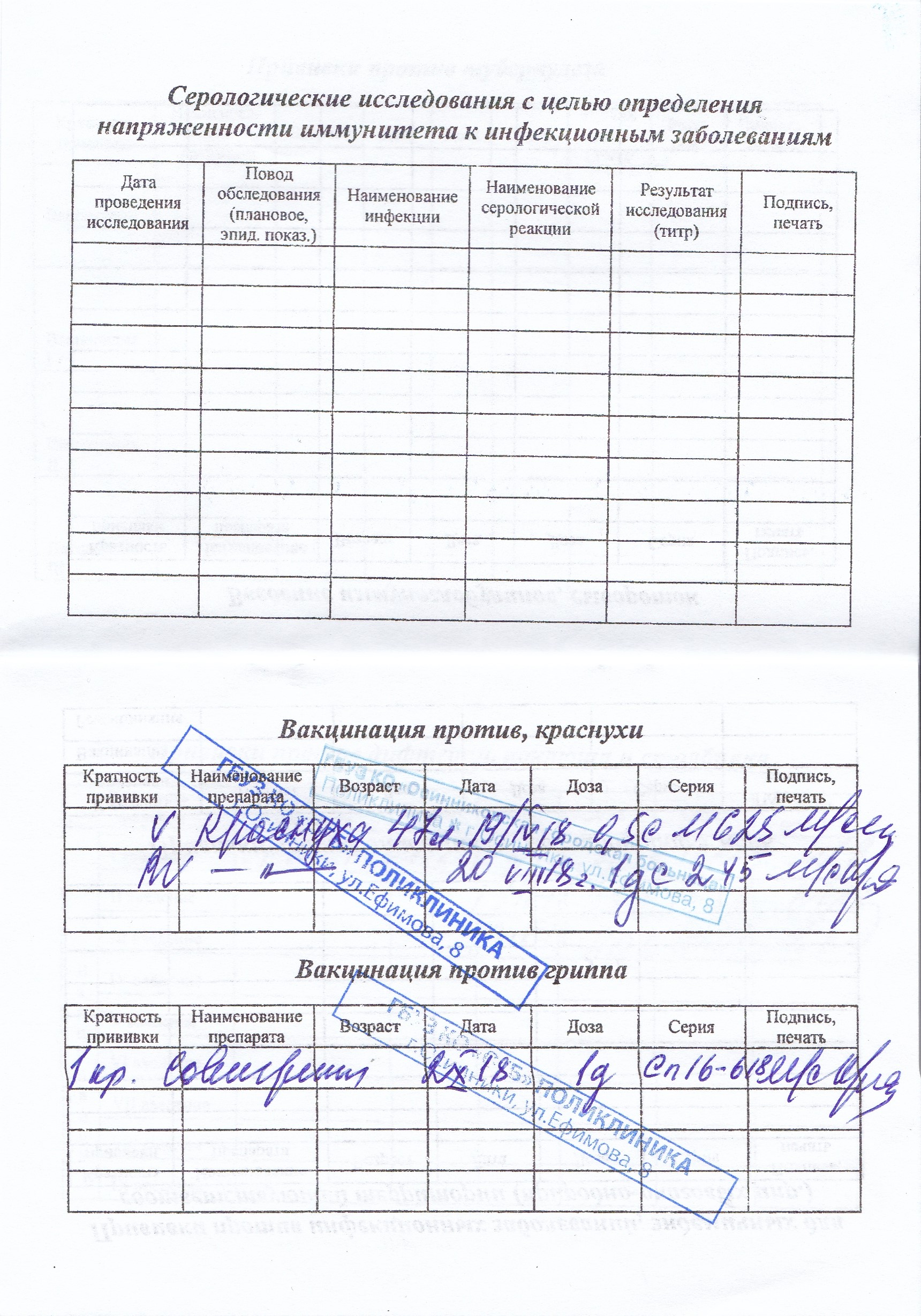 alla144 писал(а): instructor писал(а): последняя дата АДСМ? 10.09.2013? а справка выдана августом 2013-го? проясните этот вопрос. А так - всё есть. Только грипп нужен. Справку мы получили в мае 2018, когда забирали мед.карту с прежнего места жительства в другом городе. Сегодня ходили в мед.центр к педиатру, показывали эту справку(учетную карточку) о прививках. Да, АДСМ сделана 10.09.13. Спросили, можно ли сделать сейчас, и получили ответ, что нельзя, т.к. существует Календарь прививок, где АДСМ по срокам в 14 лет. А девочке сейчас 12 лет и 1 мес. Т.е. нам нужен только грипп? Последняя проба Манту 7 мм, сделана в апреле 2017. Собираемся сделать ее недели через 3. Пропустили сроки в связи с переездом и пр. Не отразится ли это на тесте IGRA? Спасибо, Мария P.S. Я даже не обратила внимания на эти даты, там в справке есть ещё прививки за 2016 и 2017 год. Лучше переделать?