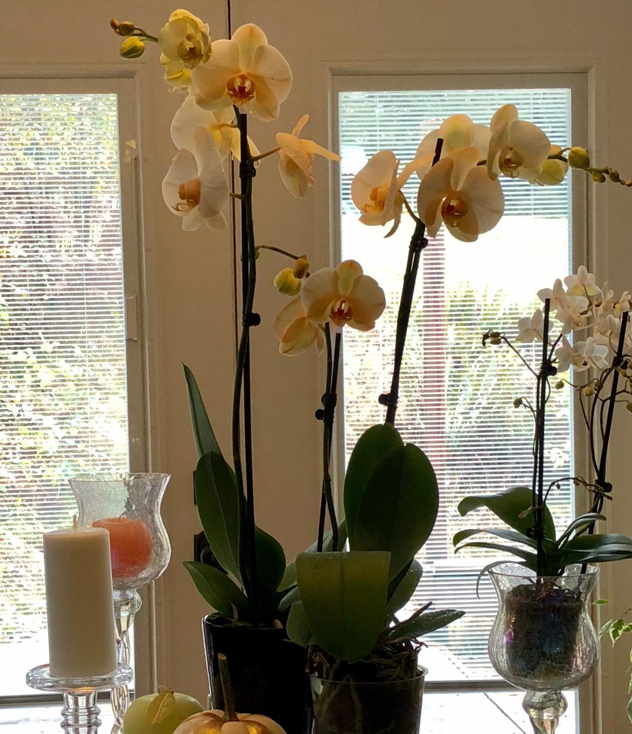 Прикол расскажу- я несколько дней назад купила же две орхи в нерсери А во Фреди( это грошери) меня потрясли нежно абрикосовые огромные орхи Но я че-то прошла мимо- показалось дорого. И говорю сыну вечером - там такие красивые орхи абрикосовые Но зараза дорогие Он мне их припер две))) ( щас сфотаю) мало того что вялые бутоны все, желтые плодоножки .. - смотрю этикеточку - крашеные )))мол будут белые при повторном цветении.... блин Относить не могу - старалось дите Взяла вынула из горшка- они были в черных керамических- вон у той что справа -грунт выше пластика Скажите что мне с ними делать? Леночка, я видела у тебя ту шикарную героиню и она в стеклянном небольшом горшке Там же нет отверстия? Расскажи как ты ее посадила, что в составе?
