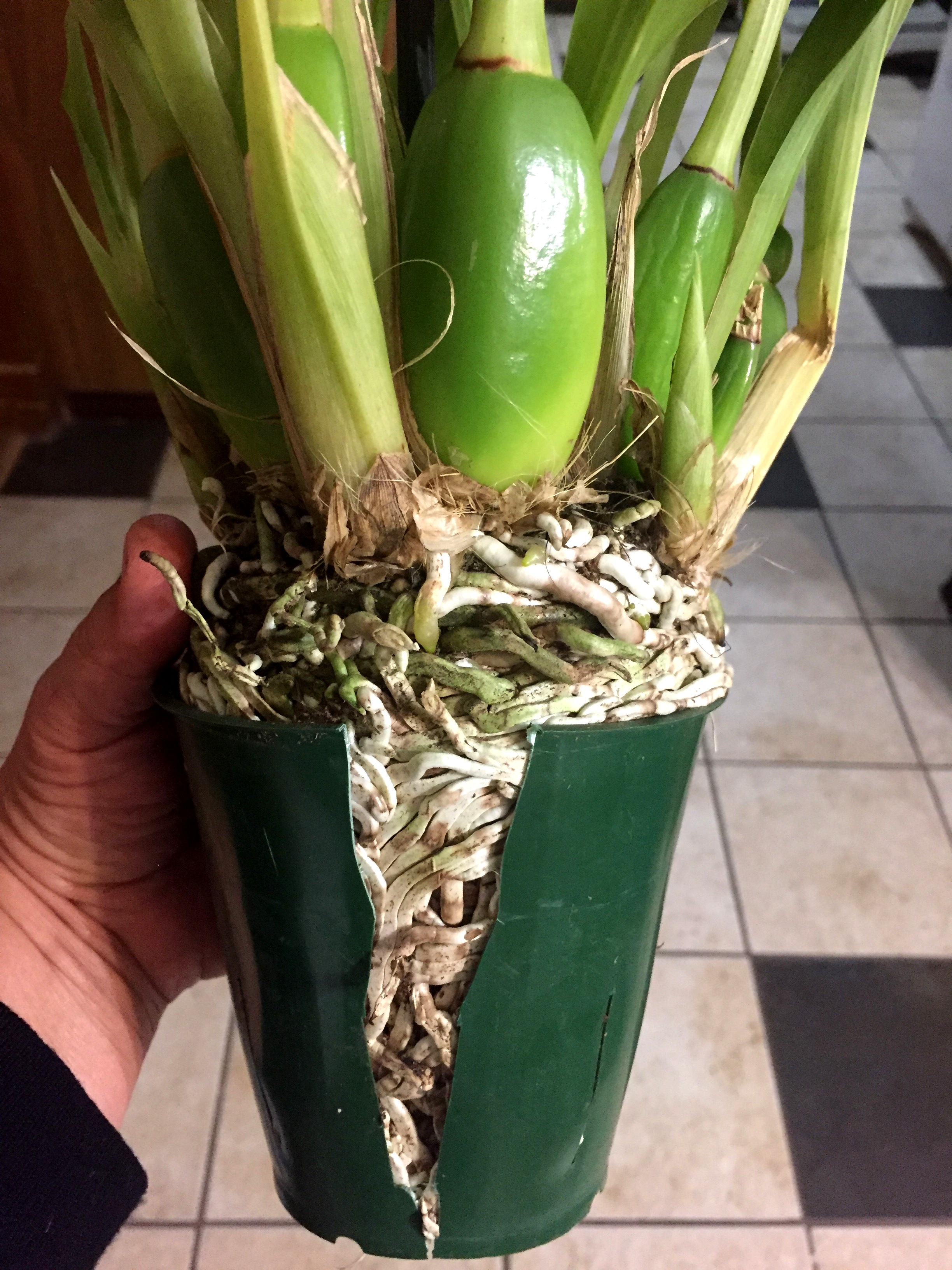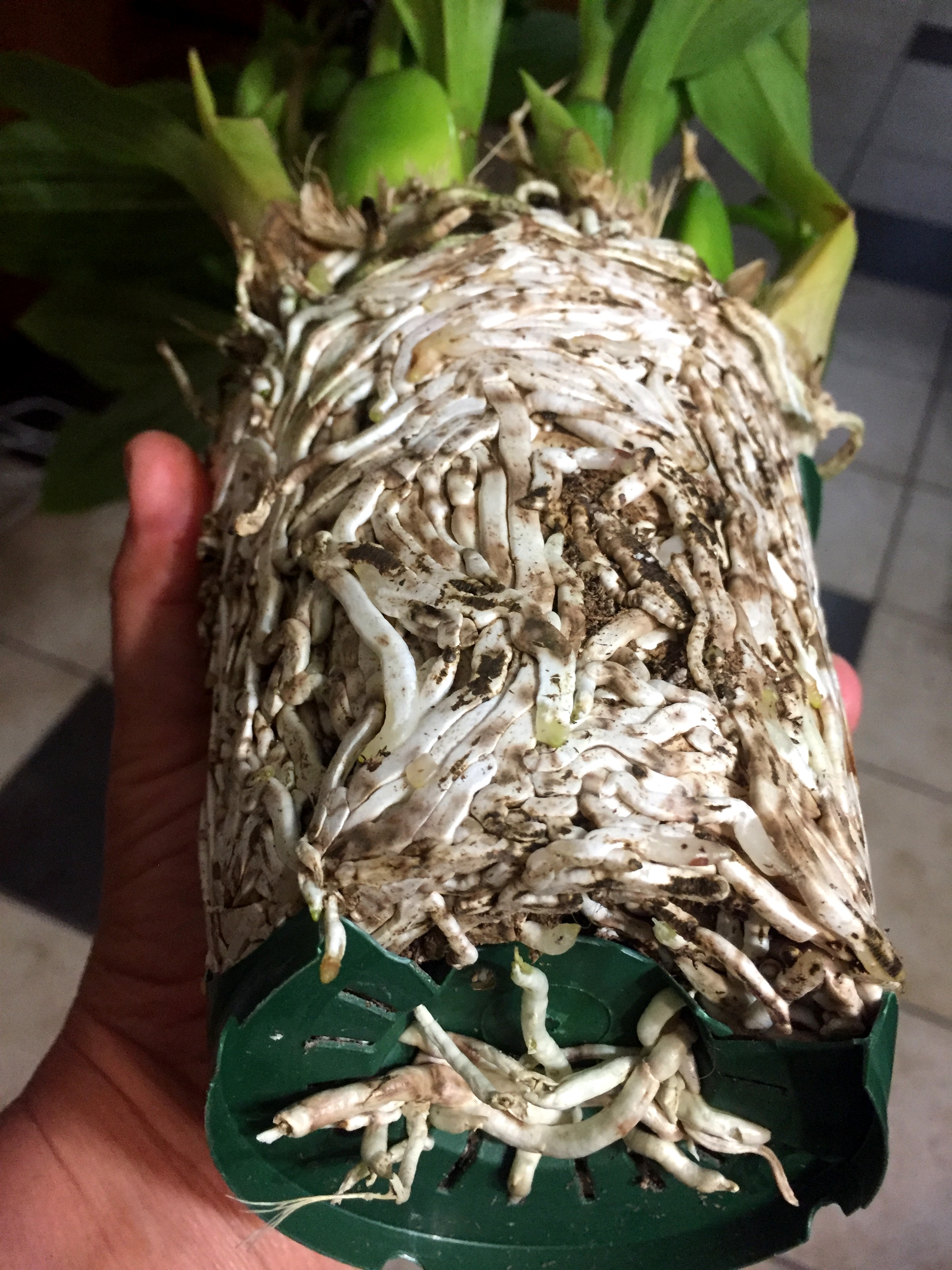 Adolocha писал(а): Кисмет писал(а): Adolocha писал(а): . Не бойтесь глубоких ваз, . Ты знаешь- мне даже с эстетической стороны не нравится, как это выглядит. Эти колбы. Мокрые пятки это тоже самое- только ты можешь регулировать воду и вынуть из нее горшок с орхой. На амазоне есть стеклянные горшки ( не высокие) с дыркой и поддоном. Вот мне они нравятся У кого 30 орх и люди работают, или сильно заняты зс само то, а мне не сложно полить лишний раз. Хотя, я еще не определилась) Не знаю, что имеешь ввиду под колбами. У меня, как у Оклахомы. В зс корни вырастают очень длинными, поэтому вазу выбираю повыше. Ну или широоокую, чтоб было место для корней. Ещё представь туда все запхать: шишки, кору, мох, лабуду, приблюду. Про полив согласна, кому-то, как тебе, нравится сам процесс возюканья с растюхами. Поливать, окучивать, опрыскивать. И это хорошо, главное, чтоб удовольствие доставляло. Кому-то лень и некогда этим заниматься, тогда зс - самое оно. У тебя же уже 4? Посади 2 в дырявый горшок, одну в зс, четвертую в пятки. Первую поливай водой, вторую людом. 3,4 по схеме. И смотри на результат, и что тебе милее. Мне не очень понятна рекомендация про кубики льда - если в дырявом горшке. то корни ведь надо рпомачивать. ТОлку от тех кубиков-то...Ну стекут куда-то... А так да, посадить по-разному и понаблюдать результат. Тем более. тчо одинаковые есть. вот хотела показать корни у новенькой  Разорвали горшок. Сейчас смотрю на эту связку и в некотором ступоре, тчо делать и когда. Хотелось бы проверить, не напихана ли губка в центре. Но тогда половина корней переломается. Как все это делить - тоже ума не приложу. У нее все-таки бутоны - хотелось бы увидеть цветок, названия-то нет.