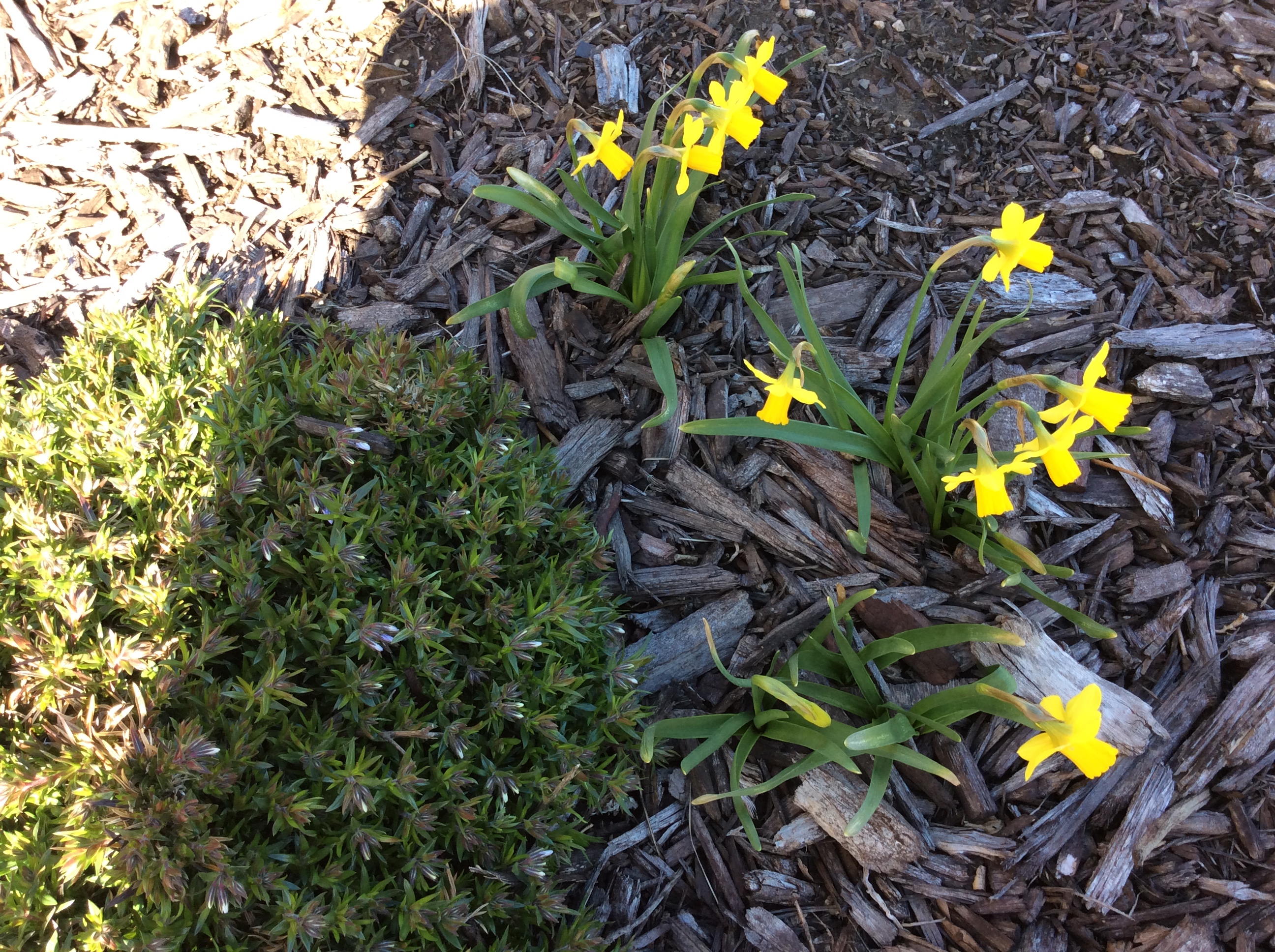 Ой, да, я обожаю весенники  очень много их сажаю осенью Вот они мои зимние Пензисы- шмензисы)) Pansies по английски. На второй фотке -мини даффодильчики, покупала прошлой весной в горшочках, в Волмарте. Выжили и цветут)) Оклахомчик, у меня рассеивались сами только Веолы, пензисы ни разу. Я у них и семян то не вижу. Мож они гибридные какие
