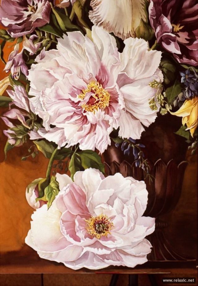 ALIEN писал(а): Это то, о чем я тебя предупреждала, когда рисуешь большие работы... я вчера выставила на мусорку, в Салвейшен Арми сказали нет места, у них пайл работ, и, пришла соседка и попросила забрать... Прикинь да) Слава тебе Господи! Подправила еще пиончики, по эталонам Китайской живописи их должно быть много и с птичками))) Мне первый пион у тебя очень понравился наоборот.. но я ничегошеньки в тенях не понимаю, это да..