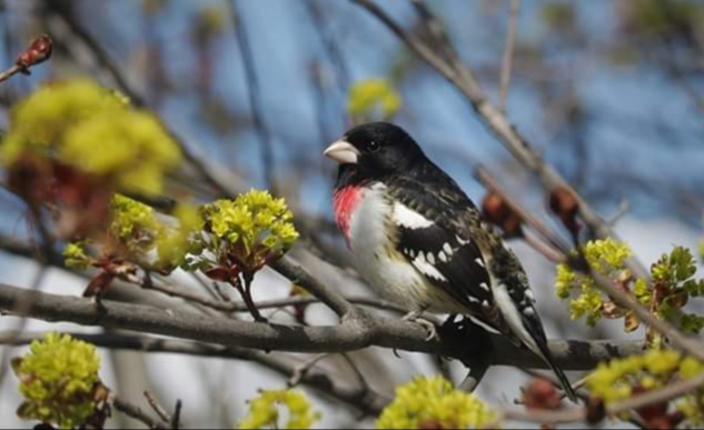А ко мне вот такой красавец на кормушку прилетает последние пару дней. Это rose brested grosbeak. Точно красавец!