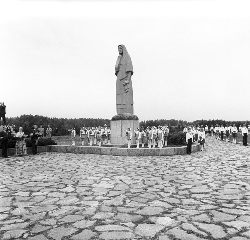 Монумент представляет собой бронзовую фигуру женщины высотой выше 4,5 метра. Она стоит, подняв в проклятии руки, в проеме ворот, которые, в свою очередь, достигают в высоту 11,5 метров. К горизонтальной перекладине ворот прикреплены 3 колокола, два из них издают звон, а третий расколот, что символизирует, что во время войны в Докшицком регионе погиб каждый третий житель.