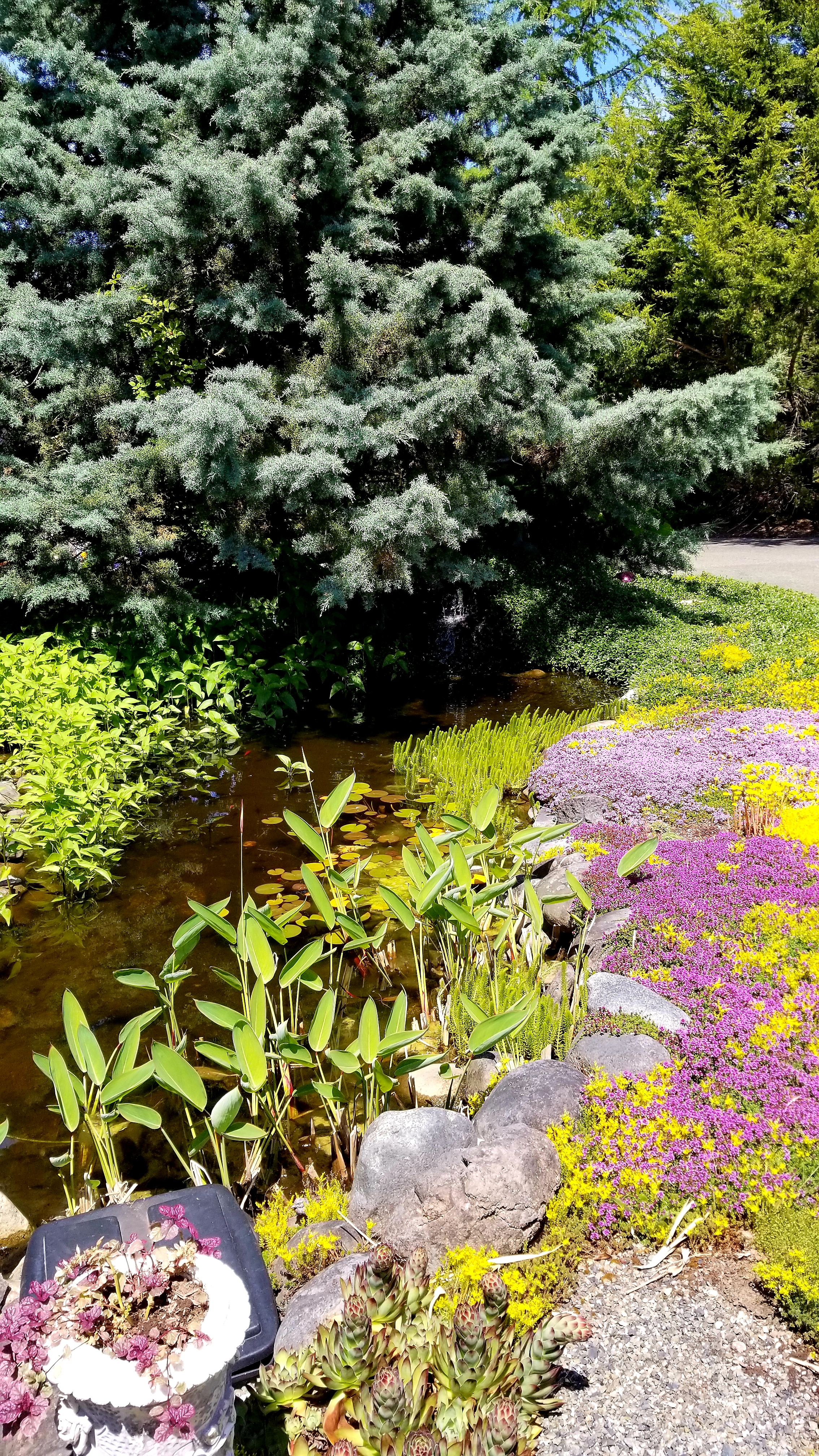 И в заключении у прудика. Если память не изменяет, Оклахома посоветовала заполнить бреши в цветущем сиреневом тмине другим гроунд ковер. Подсадила те, что вверх пошли.
