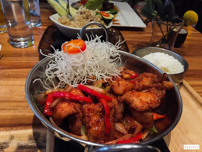 Курочка с овощами в таиландском ресторане вчера А вечером с бокалом вина у бассейна с видом на весь город.... у меня сейчас новое хобби- фотографировать еду и облака