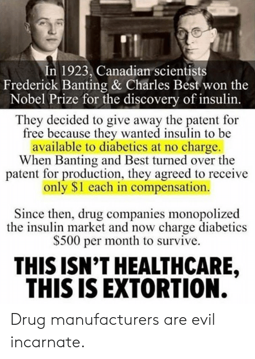 Mars2018 писал(а): Слушаю сейчас NPR news, говорят о ценах на инсулин в США. Это пипец какой то. Копеечное лекарство стоит где-то 1300 долларов в месяц, и каждый год он растёт в цене на 15% два раза в год. Многие не могут себе позволить это лекарство, есть случаи смерти из за того что растягивали дозу инсулина, кололи меньше чем нужно. Фарма контролирует цены на лекарства, даже на такие которые помогают диабетикам не умереть. Хуже всего тем, у кого врожденный тип 1 диабета, со 2ым хоть можно reverse если поработать над здоровьем и life style. У кого нет диабета, следите за здоровьем, иначе вот такие цены вас ждут. Даже в странах 3его мира инсулин доступен, и в некоторых его дают бесплатно. Вообще, интересно как создание и опыты некоторых лекарств были спонсированы налогами населения, а потом эти компании приватизировали это лекарство себе и возвышали цены в несколько тысяч процентов. Как с лекарством для больных с ВИЧ. С такой Фармой и медициной и войн никаких не нужно, жадностью истребляют население. И ничего не изменится, что бы политики не обещали, они там все про лоббированы фармой и врачами. Все политики в том же котле с деньгами.