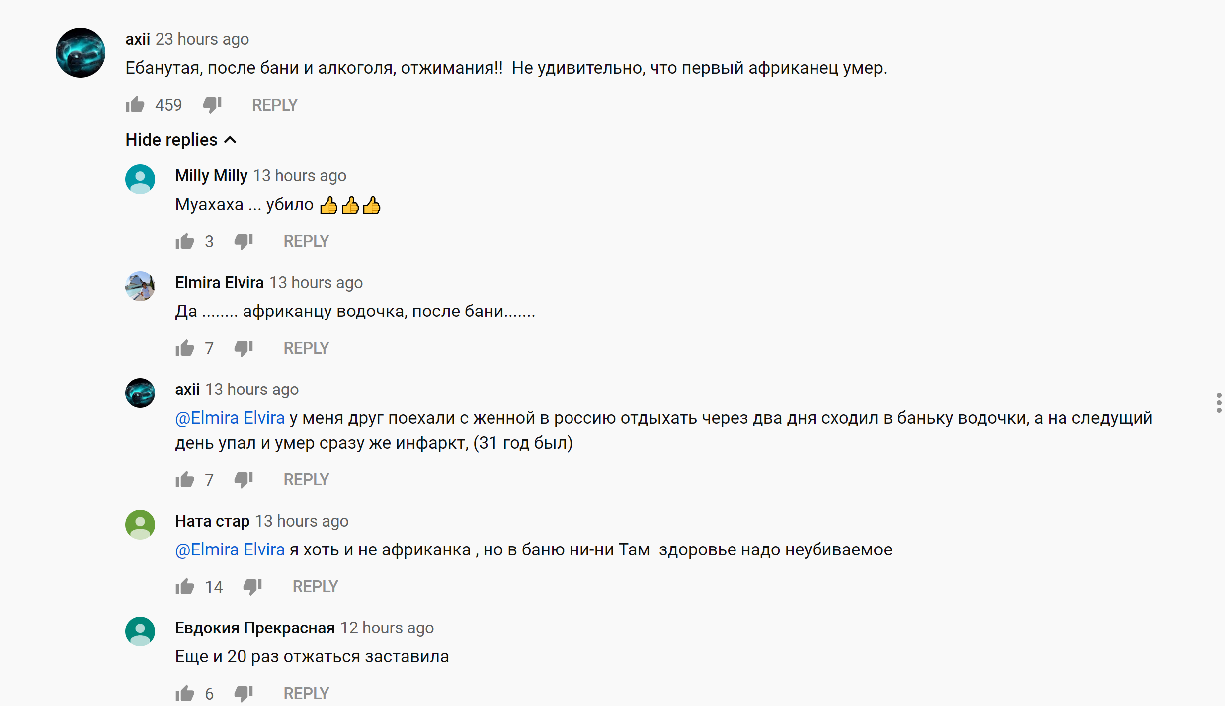 Не знаю что это за люди из Нигерии. Я ни Малахова, ни Российское ТВ не смотрю.