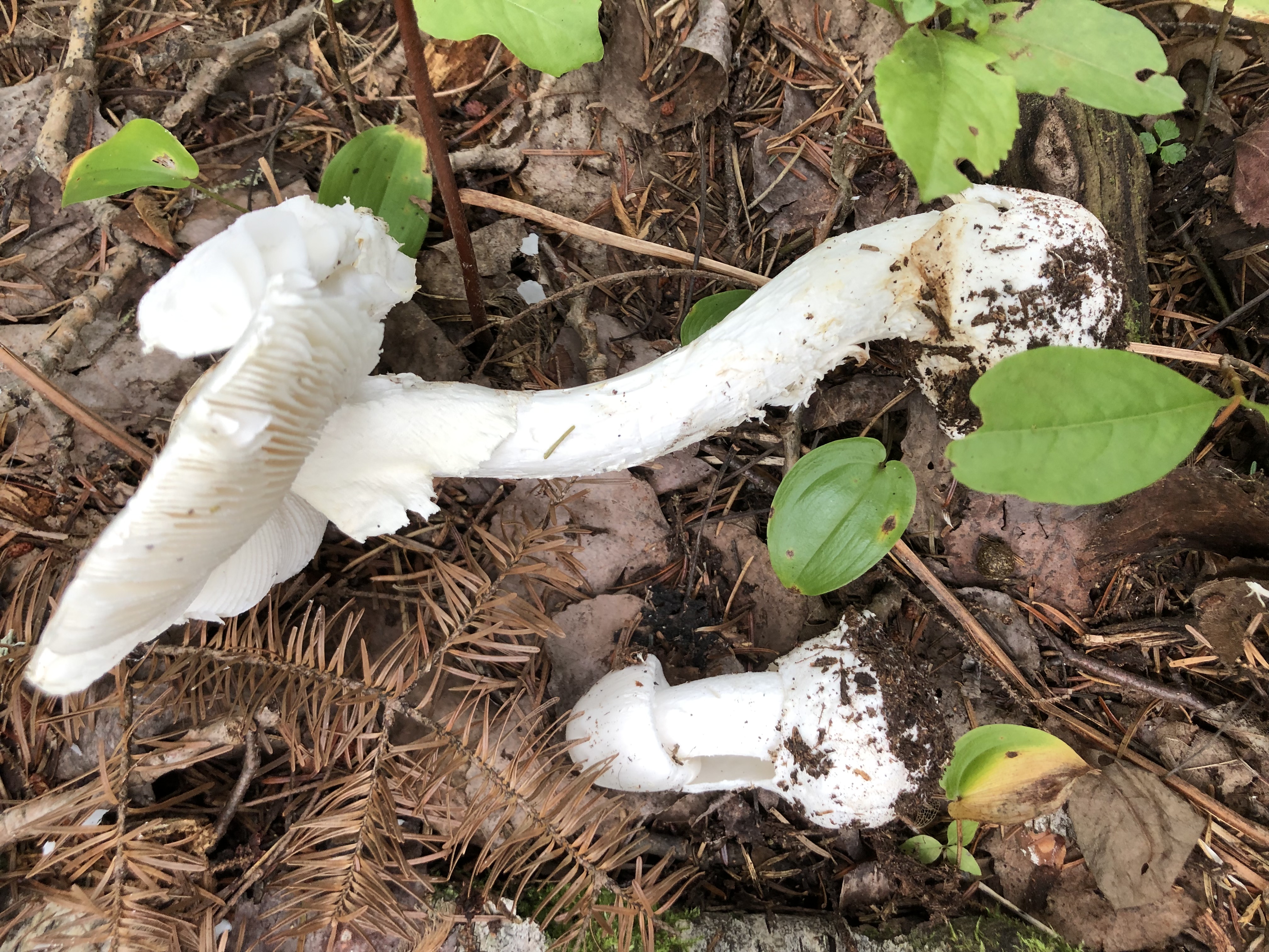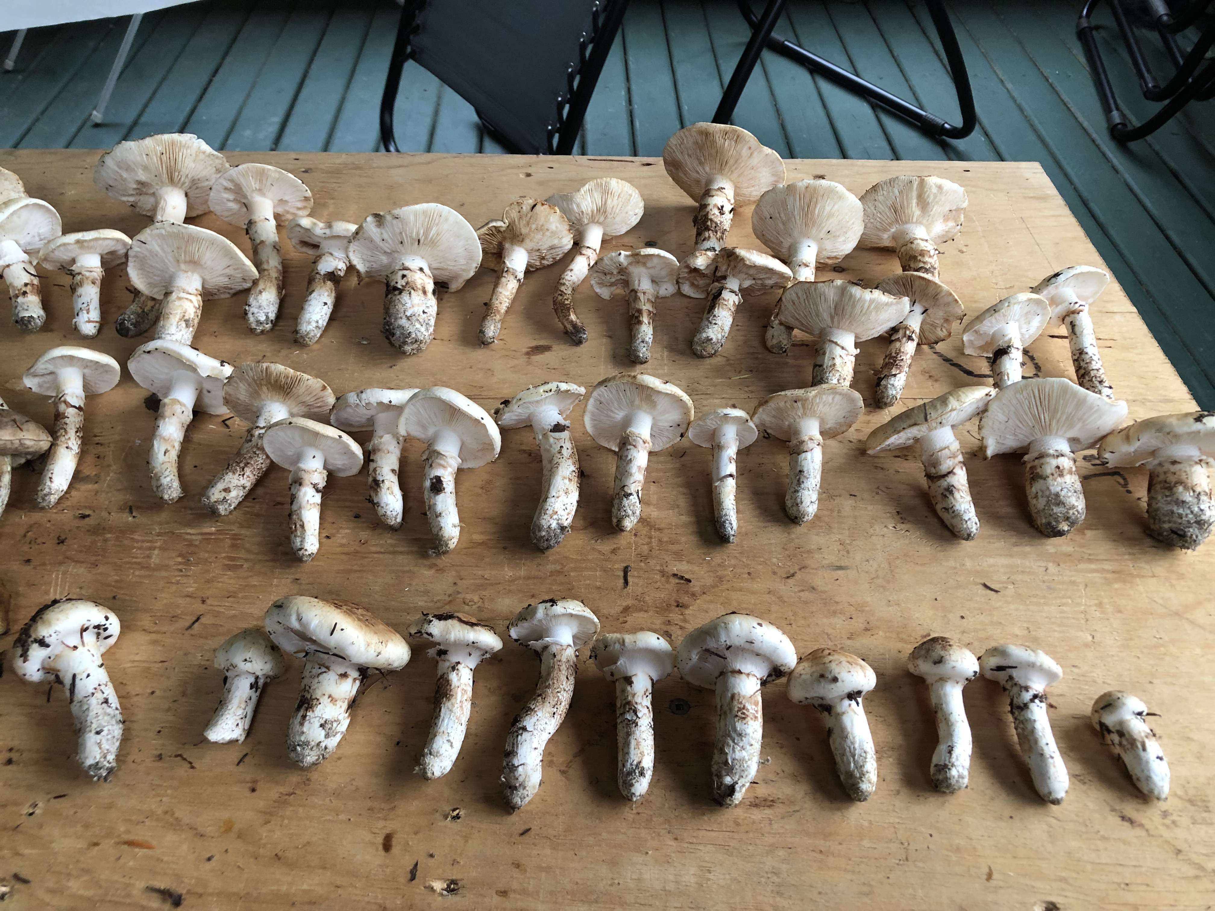 Мухоморы не так опасны, как белая поганка (мухомор вонючий, destroying angel). Четверть шляпки оной может легко отправить на встречу к праотцам.  И они везде-везде, цепляют взгляд своими кипельно-белыми шляпками.
