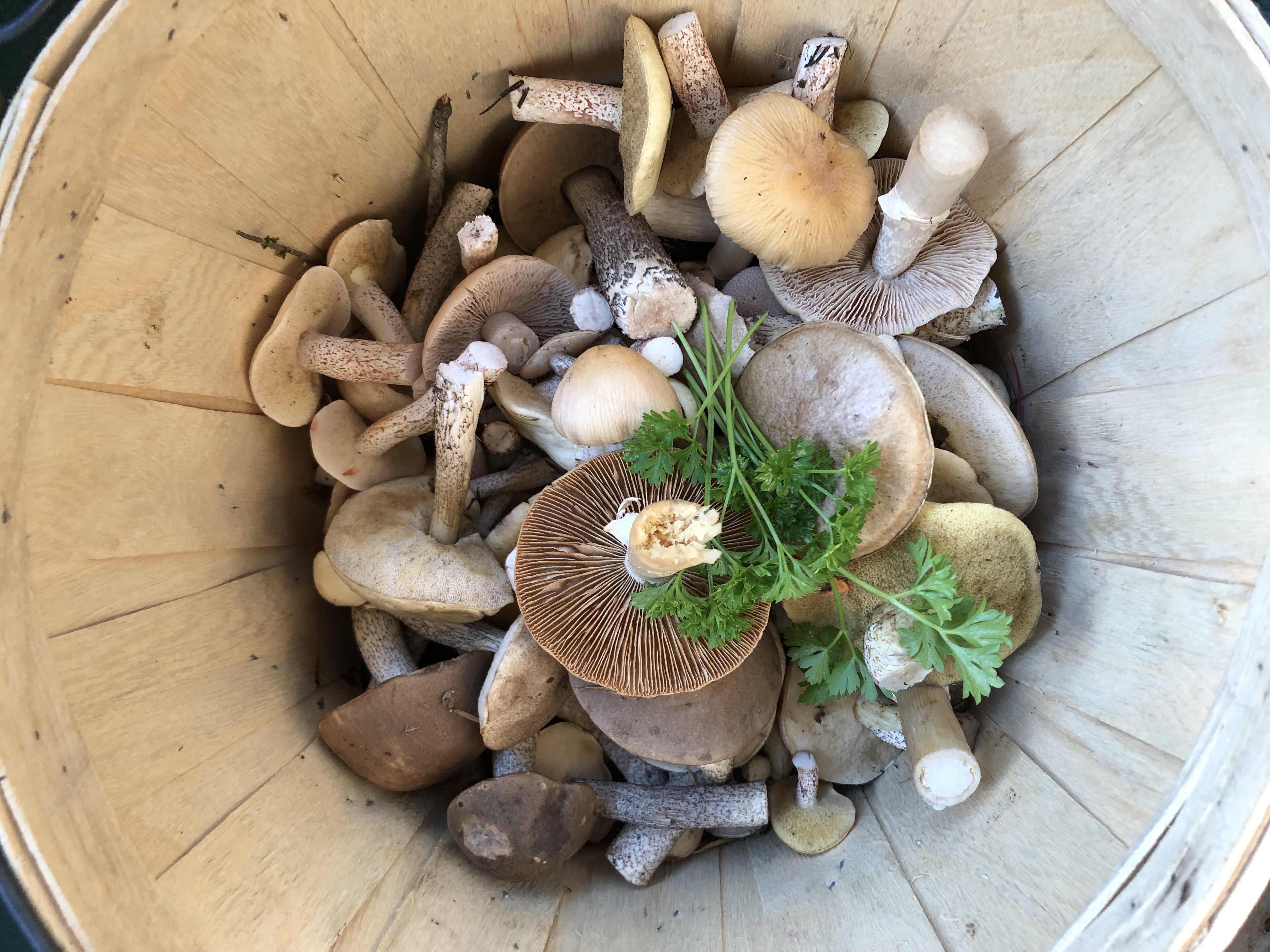 Неделю назад: подберёзовики, подосиновики, один белый, мяслята, рыжики и лисички.