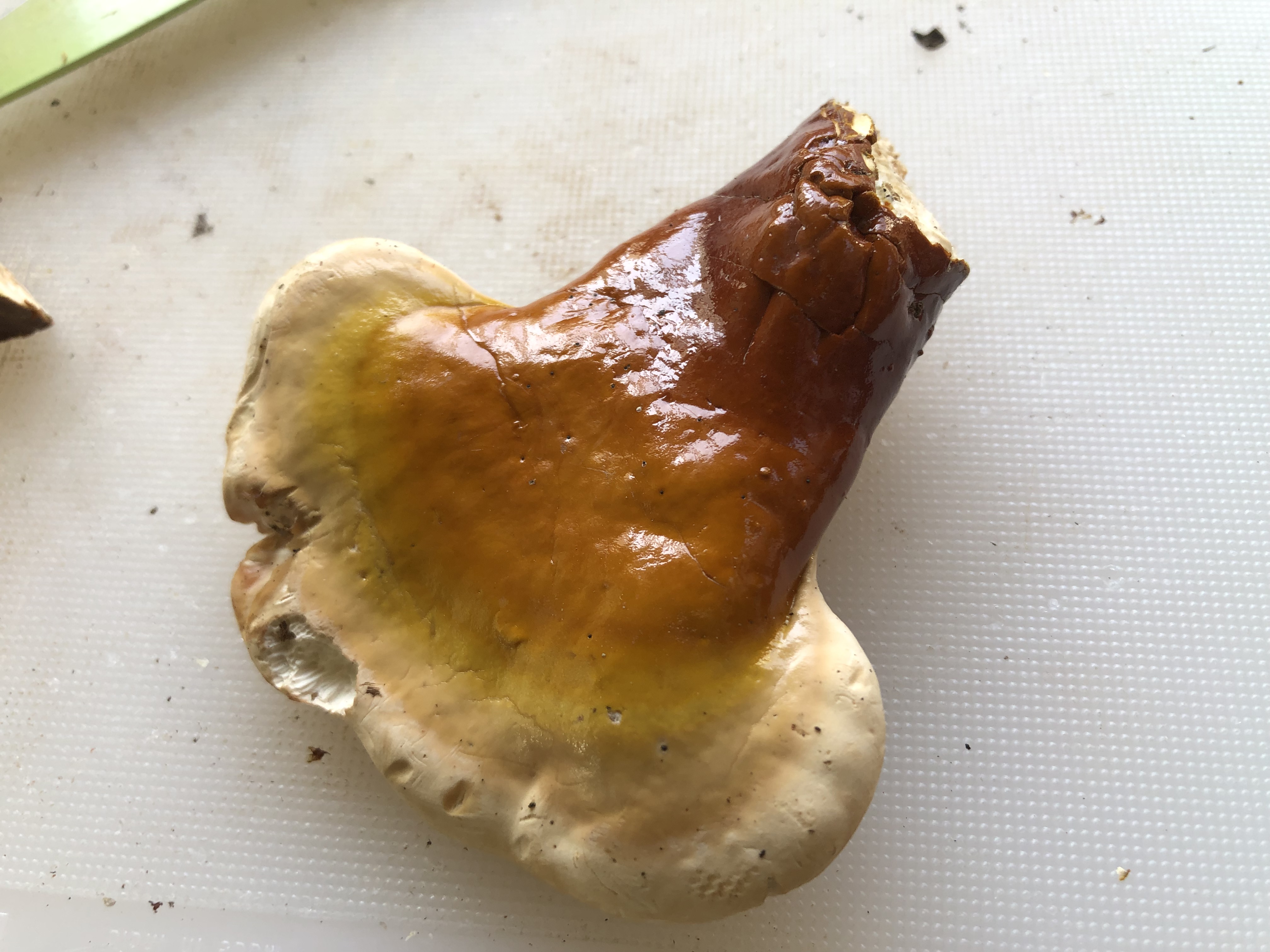 Вот золотая находка. Рейши - гриб долголетия. Вот здесь о нем на грибном форуме интересно обсуждают https://astromed.club/p237985902-kapsul ... plyus.html Как уже писала, нашёлся только на одном пне на несколько квадратных километров. Я срезала этот, что на фото для идентификации, убедилась и засушила для настойки. Остальные - пару маленьких аккуратно стала растить, навещая этот пень время от времени. В конце сентября срезала, добавила к первому. На том пне ещё обнаружила очень старые, чёрные протухшие лопухи этого гриба, оставшиеся с предыдущего года. Разнесла их по соседним пням. Но не уверена в успехе. Пишут, что они очень капризные для размножения. Нужно, чтобы сошлось много факторов воедино .