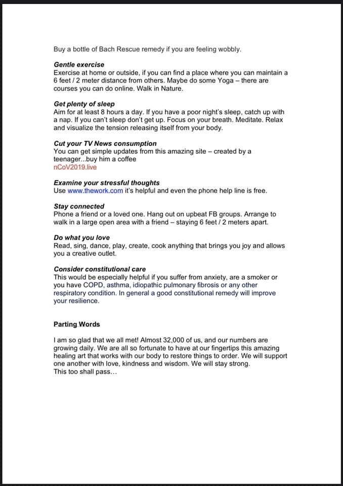 Мои гомеопатические лекарства уже в дороге, жду) Я не слышала про такое средство. А какое у него гомеопатические название? Наверное написано там где ингредиенты. Я хочу поделиться историей с ФБ. Оказывается, Короной можно болеть больше месяца, с легкими симптомами, и не выздоравливать! Мужик в этой истории сначала принимал Gelsemium, вроде помогало, но не до конца. Так у меня то ведь то же самое! И я тоже принимала Gelsemium, вроде было лучше, но до конца так и не проходило. Постоянно ощущение что у тебя stomach flu, stomach is on the edge, живот того и гляди заболит. Все это слегка, голова немного congested, вроде все не страшно, но ведь не проходит! У меня сейчас два гомеопата и оба useless! Я сама по симптомам определила, что у меня все симптомы Phophoric Acid. Вчера наконец то получила его по почте, сразу приняла, сегодня утром уже значительно лучше. С утра приняла второй раз, сейчас уже почти нормально. Буду принимать пока полностью все симптомы не пройдут. Этот мужик в истории ниже чуть не умер! И это после почти двух месяцев вялотекущих симптомов. Девочки, будьте очень внимательны к своим симптомам. Этот вирус очень коварный и иногда протекает совсем незаметно, пока не станет поздно! l I thought I would add my experience to this thread in case it helps some practitioners: I have carona virus. I’ve been struggling with it intensely for 10 days, but if I look back, I must have been infected in late January. I have been treated by a fine homeopath. At first she treated with Gelsemium. It helped for nearly a month to keep what I thought was just the flu at bay...but 10 days ago it ceased working and I had a sudden chest tightness and breathing issues and high temperatures every evening...during a crisis moment she prescribed Carbo Vegetalis to open my lungs quickly. It worked and saved me that night. The next day, she started a protocol of Antimonium Tart. It was slow to work at first, but after repeated 200c doses, I can now say I no longer have nightly fevers and I can breathe pretty much freely again. I’m sharing in case this experience helps others. I’m staying in quarantine for another 14 days. I’m so grateful for homeopathy!