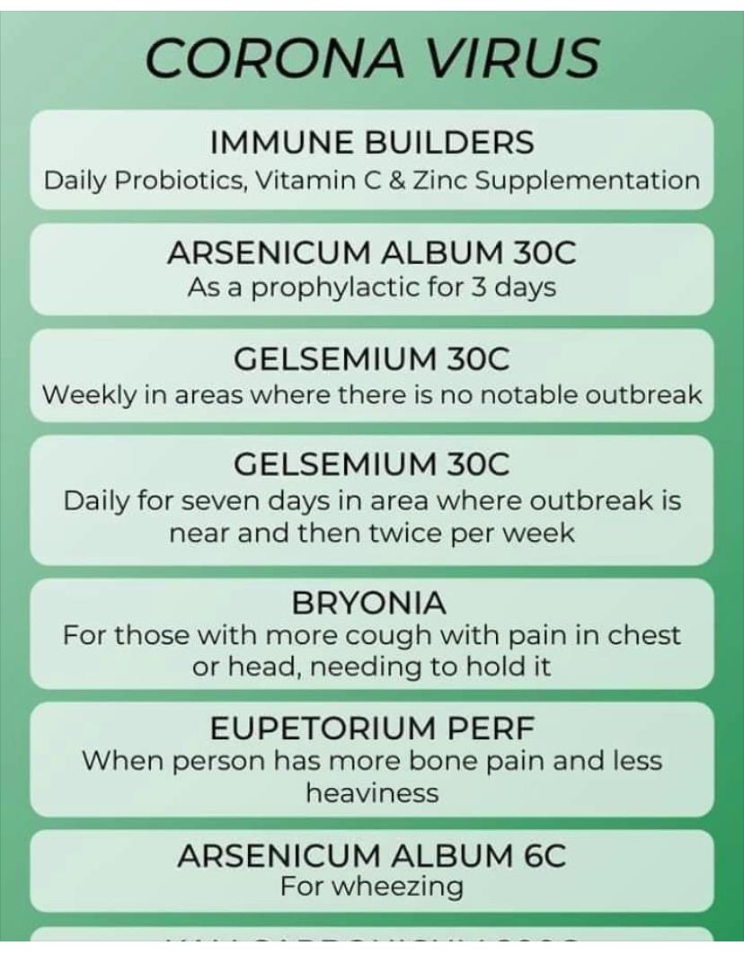 Pakistan has a lot of resources to deal with the corona. Soon, every pakistani is very much more likely to get affected by this virus. Now, instead of fear, they should be handed over to it, and they have to compete with this virus. Let's use your strength to help increase your strength and use the homeopathic medicine. Especially take for a week of the arsenic album 200 this medicine creates resistance against krona in your body. Other remedies are phosphorus 200, camphor 200, lycopodium 200, justicia 200, nux vomica 200, pnemonnicus 1m, sulphur 200, spongia 200 ہیں۔