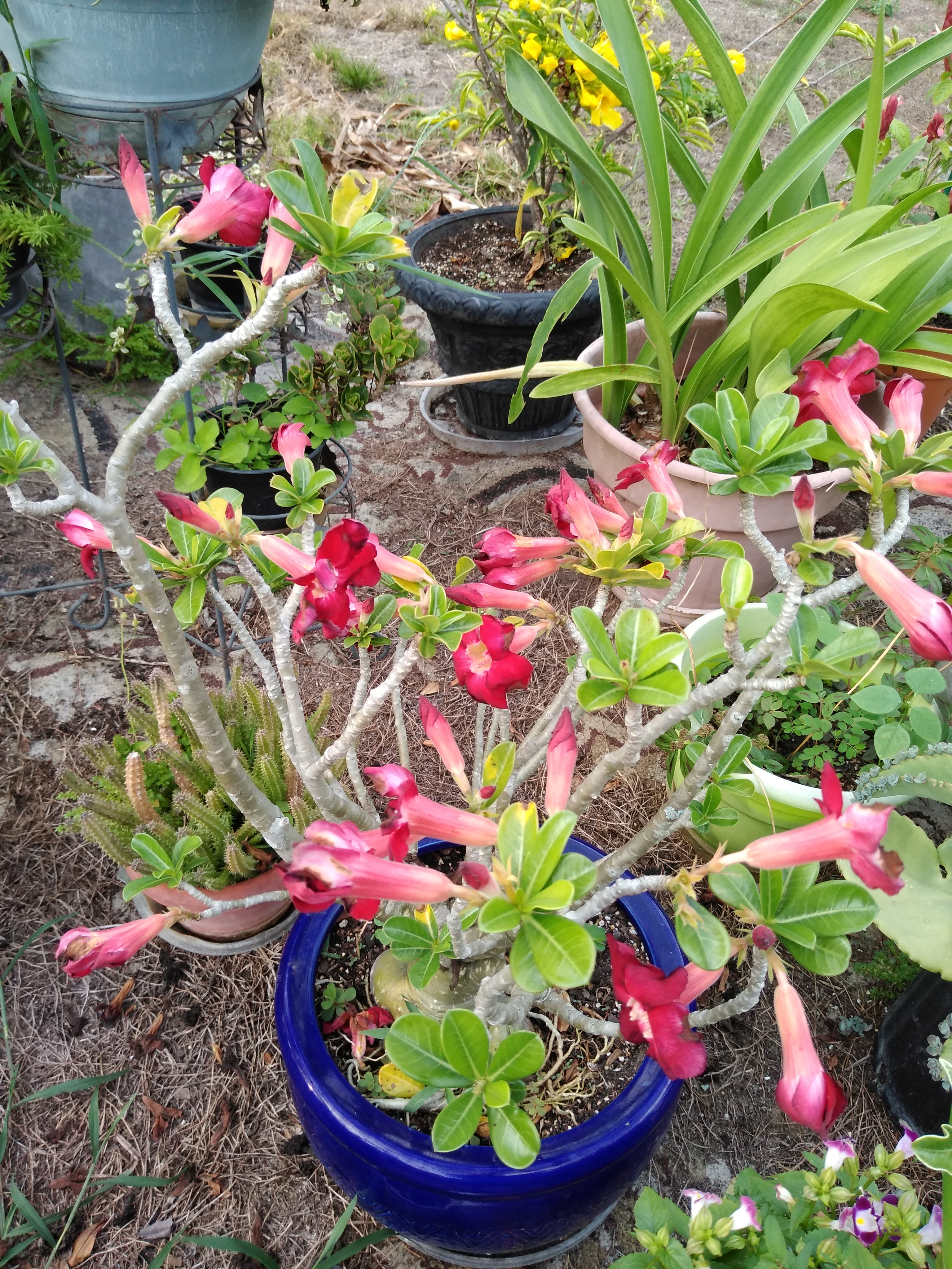Марсевна, как твои адениумы? Адешик такой интересный, с попой. Мне помню кто то его хотел отдать, но как комнатное растение в горшке, и что-то припоминаю подобные были очертания  Это меня и остановило. Адешки восстанавливаются потихоньку.В этом году весна ненормальная абрикосы почти не цвели а что завязали почему то скинули.Чего то ждут нехорошего.Мне неуютно.Немного дала дура яблоня.Но она 2 раза в год дает яблоки.Пионы зацвели но быстро опали красоты не было потому что на них накинулись трипсы жрать совсем нечего цветов очень мало в жтом году.Даже амарилисы плохо цветут.Кака ни странно зацвели очень обильно пальмы.Кстати это тоже плохой знак.Пальмы редко цветут и цветут когда чувствуют что могут погибнуть.Вообщем очень тревожные знаки.Очень долго было холодно.И сейчас очень резко жара под 40.Погода тоже непонятная